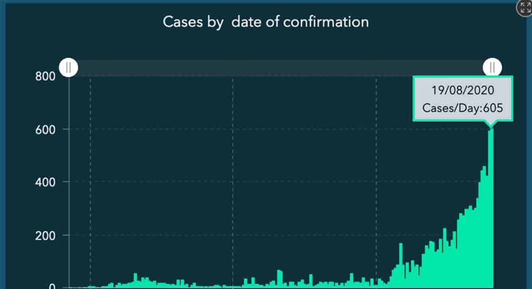 L’infection de 597 personnes serait d’origine locale – un nouveau record – et seulement 8 en provenance de l’étranger. 4 nouveaux décès ont été constatés ces dernières 24 heures.