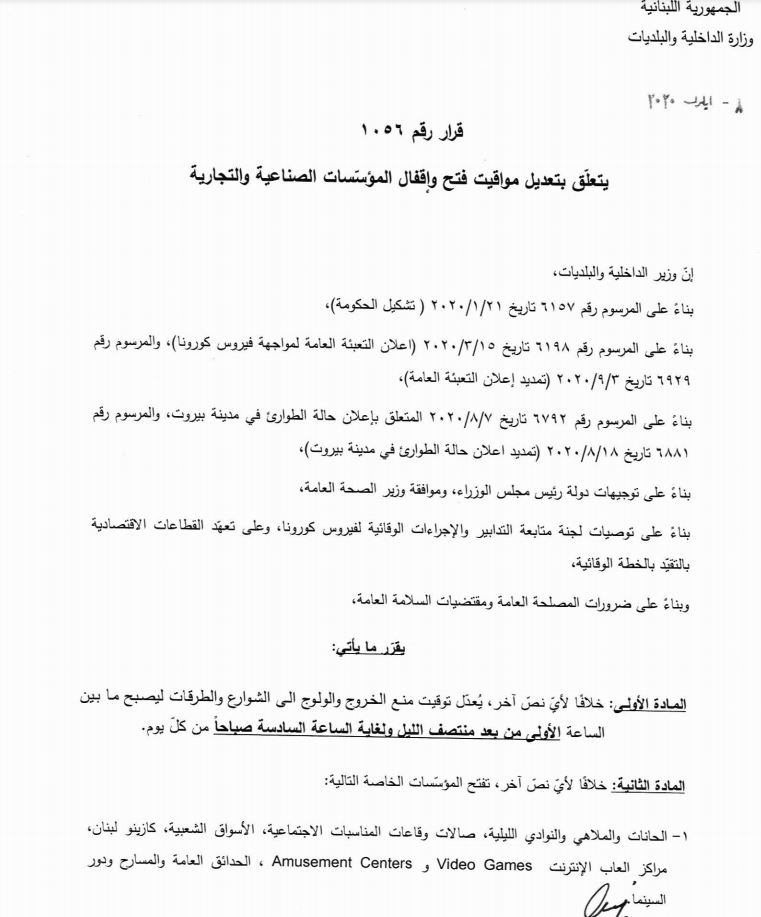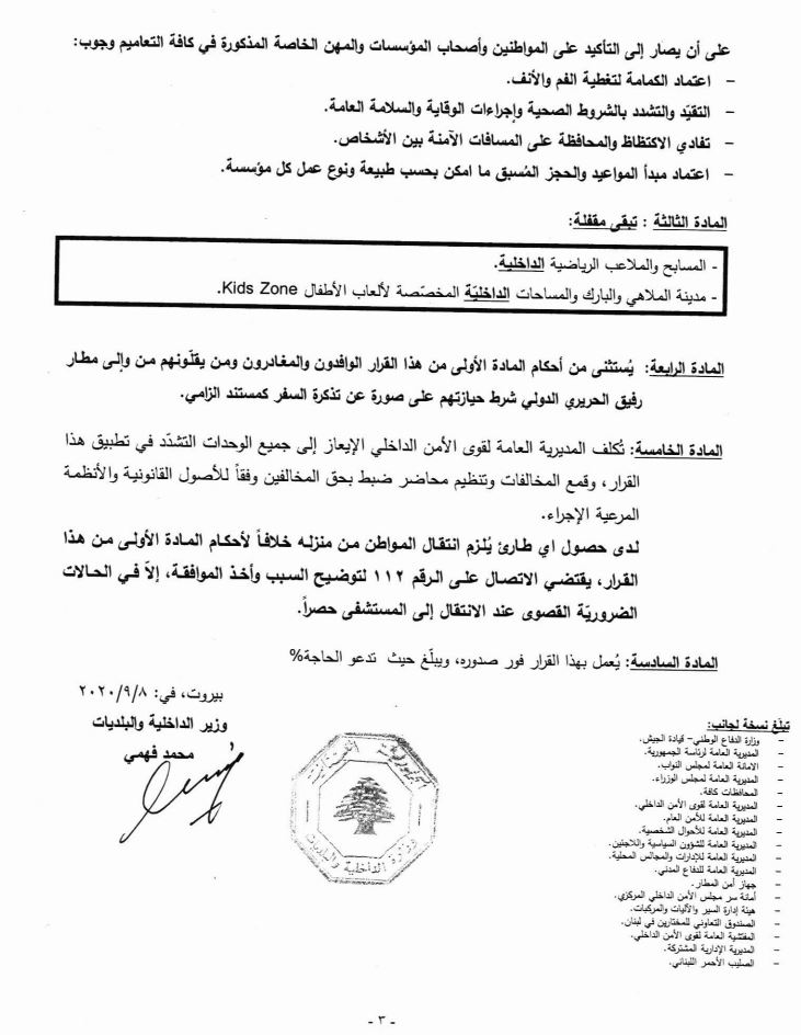 Les pubs ou encore cinémas pourront désormais rouvrir leurs portes, tout comme les boites de nuit, salles de fête, marchés publics ou encore le Casino du Liban, après que le syndicat des restaurants, hôtels et autres lieux touristiques ait menacé d’une escalade en boycottant les mesures préconisées face à la pandémie, il y a 2 semaines.