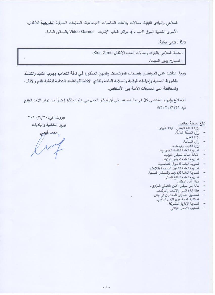 En dépit d’une forte augmentation du nombre de cas de personnes contaminées ces dernières 24 heures, le Ministère de l’intérieur a levé certaines mesures mises en place pour éviter toute propagation du coronavirus COVID19 au Liban.