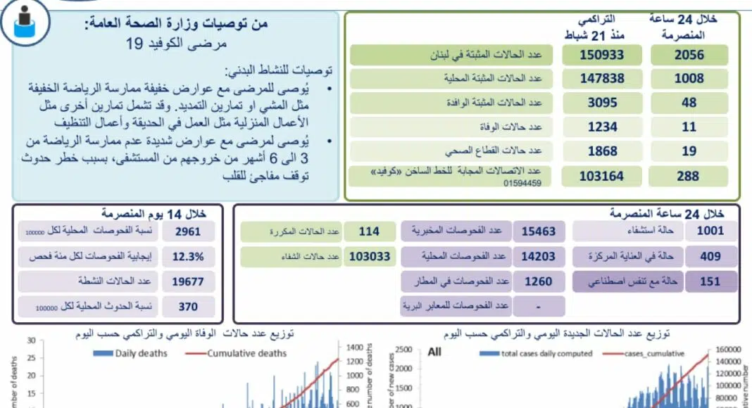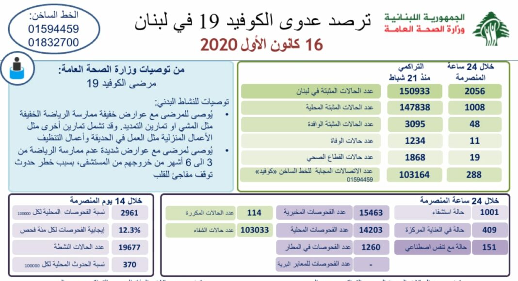 Pour l’heure aucun correctif n’a été donné par les autorités libanaises, même si certaines sources médiatiques – qui ne semblent pas pris le soin de vérifier les chiffres avant publication – évoquent le bilan de 2056 cas quotidiens.