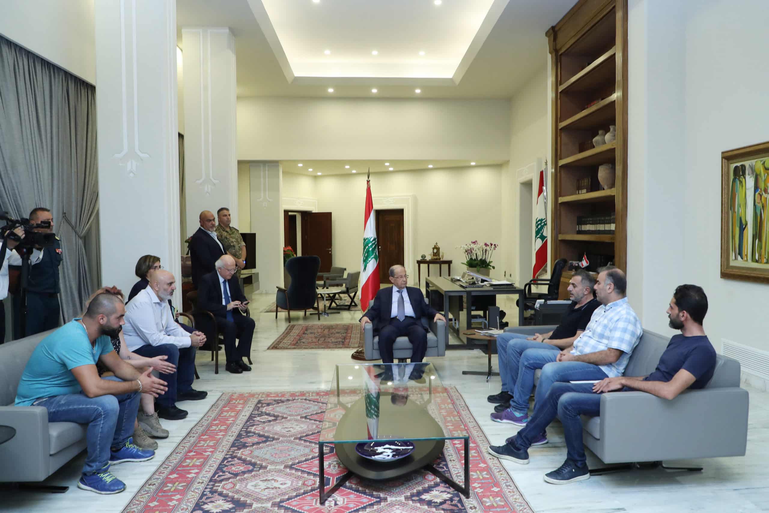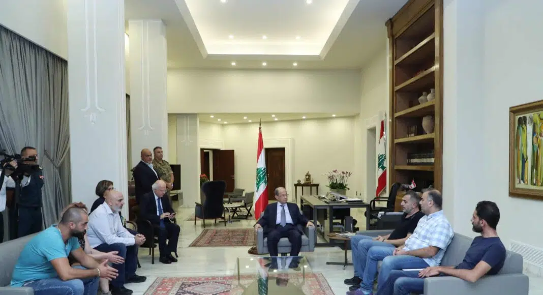 Le Président de la République Michel Aoun s’est réuni ce soir avec une délégation représentant les manifestants qui s’étaient rassemblés devant le palais présidentiel de Baabda, avec à sa tête Rami Olleik qui a mis le président au courant des revendications des manifestants, lui expliquant les raisons qui les ont poussés à faire ce mouvement et faisant état de la crise que subissent les Libanais, notamment la jeunesse libanaise. De son côté, le président Aoun a répondu en assurant que depuis son élection à la tête de l’Etat libanais, il a tenu à effectuer les réformes nécessaires au pays, ainsi que les avancées enregistrées au niveau du système politique et la lutte contre la corruption. « Votre douleur est la mienne, je ressens ce que vous ressentez, et je vais faire mon possible pour atténuer vos souffrances. Nous avons déjà entrepris une série de procédures afin de mettre fin à vos peines, et nous allons poursuivre notre tâche dans ce sens-là, tout en prenant compte de la structure du système libanais et les règles de ce système et ses caractéristiques ». Après avoir remercié le président de les avoir reçus, les membres de la délégation lui ont promis de partager son point de vue avec les manifestants. Après cette rencontre, les manifestants présents devant le palais présidentiel de Baabda se sont dispersés. Pour info, Rami Olleik est un avocat libanais ancien membre du Hezbollah qui a quitté ses rangs en 1996 après avoir dénoncé la corruption au sein de ce parti. Aujourd’hui c’est un activiste et professeur d’économie agricole à l’AUB.