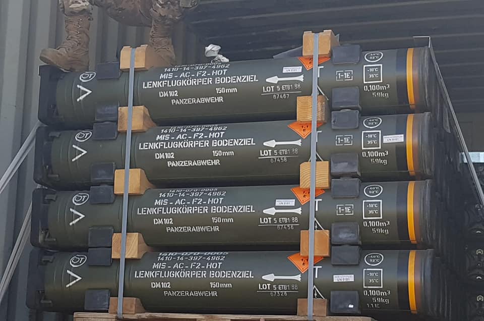 - 96 missiles anti-chars HOT franco-allemands dont la livraison avait été longtemps bloqués par les autorités allemandes