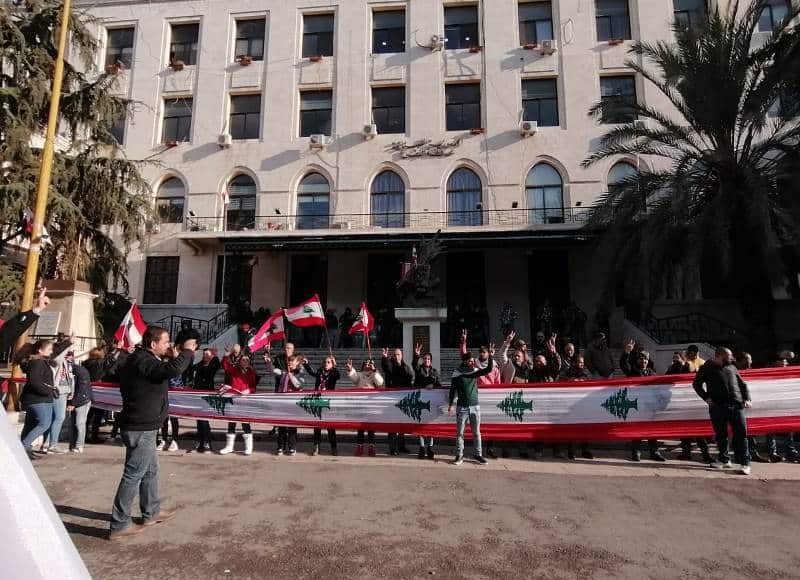 Les services publics de la ville de Halba sont toujours perturbés par le mouvement. Ainsi, les protestataires se sont rassemblés devant l’office des eaux, le centre des impôts, le cadastre, Ogero, le Centre de formation professionnelle et technique mais également l’EDL. Ils ont appelé à la formation d’un gouvernement indépendant qui lutte contre la corruption et restitue les fonds pillés et œuvre pour sauver la situation économique et de vie de l’effondrement.