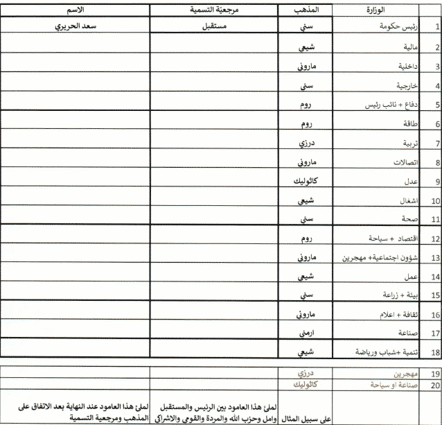 La présidence publie ainsi à son tour un document concernant la formation du prochain cabinet et comportant un mécanisme de nomination de 20 ministres sans nom donc sans tiers de blocage contrairement aux accusations du premier ministre désigné Saad Hariri.