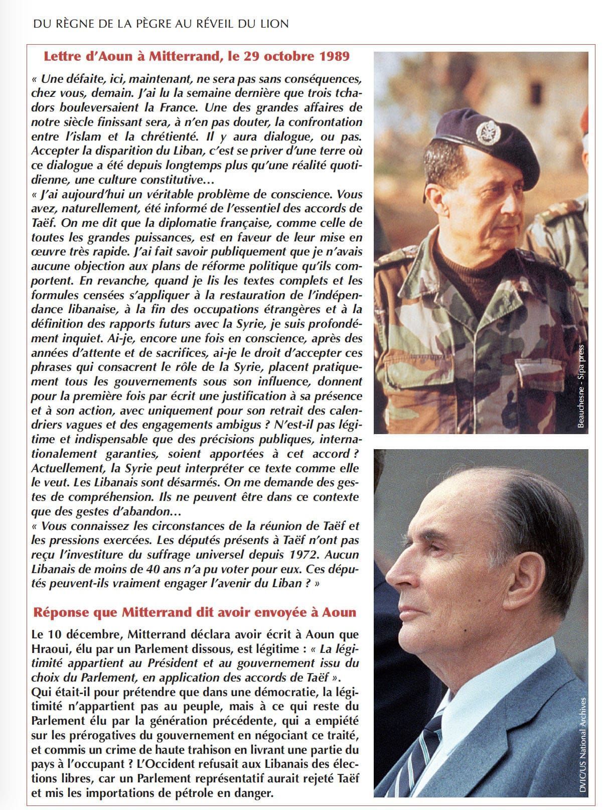 Réponse que Mitterrand dit avoir envoyée à Aoun