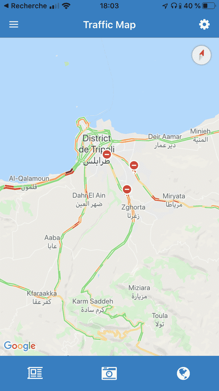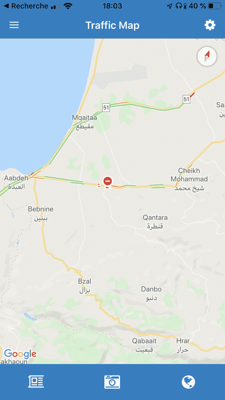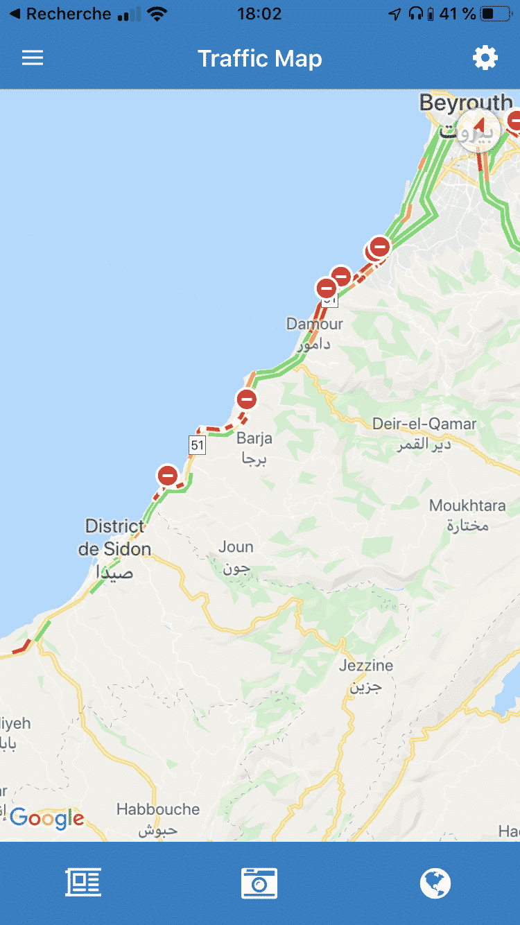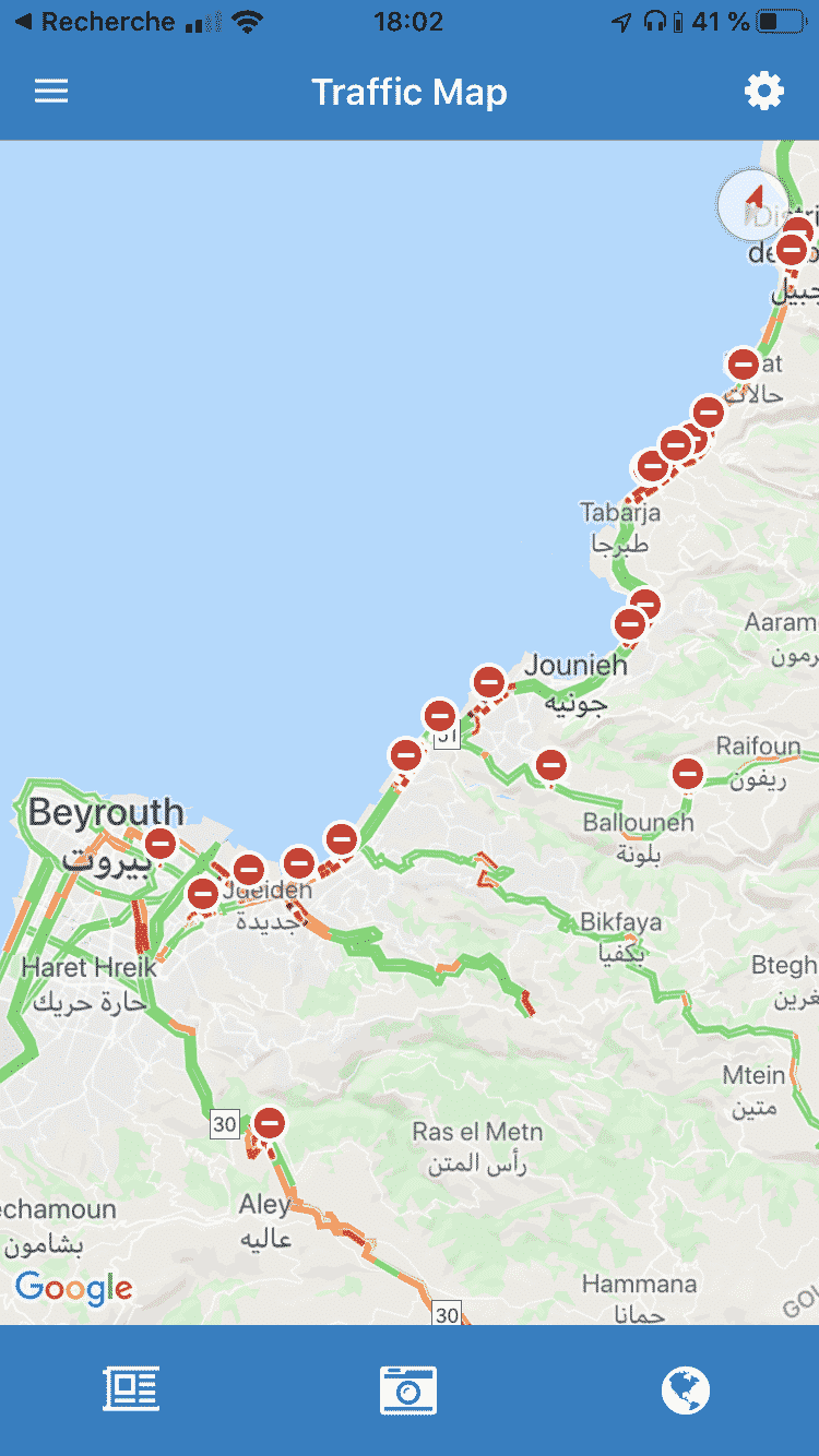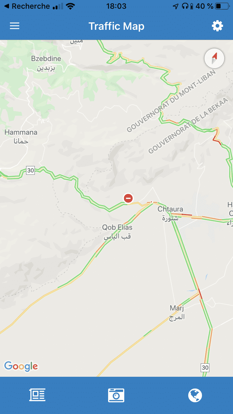 L’Application TMO permet, grâce aux FSI, de visualiser les barrages actuellement mis en place dans les différentes régions libanaise.