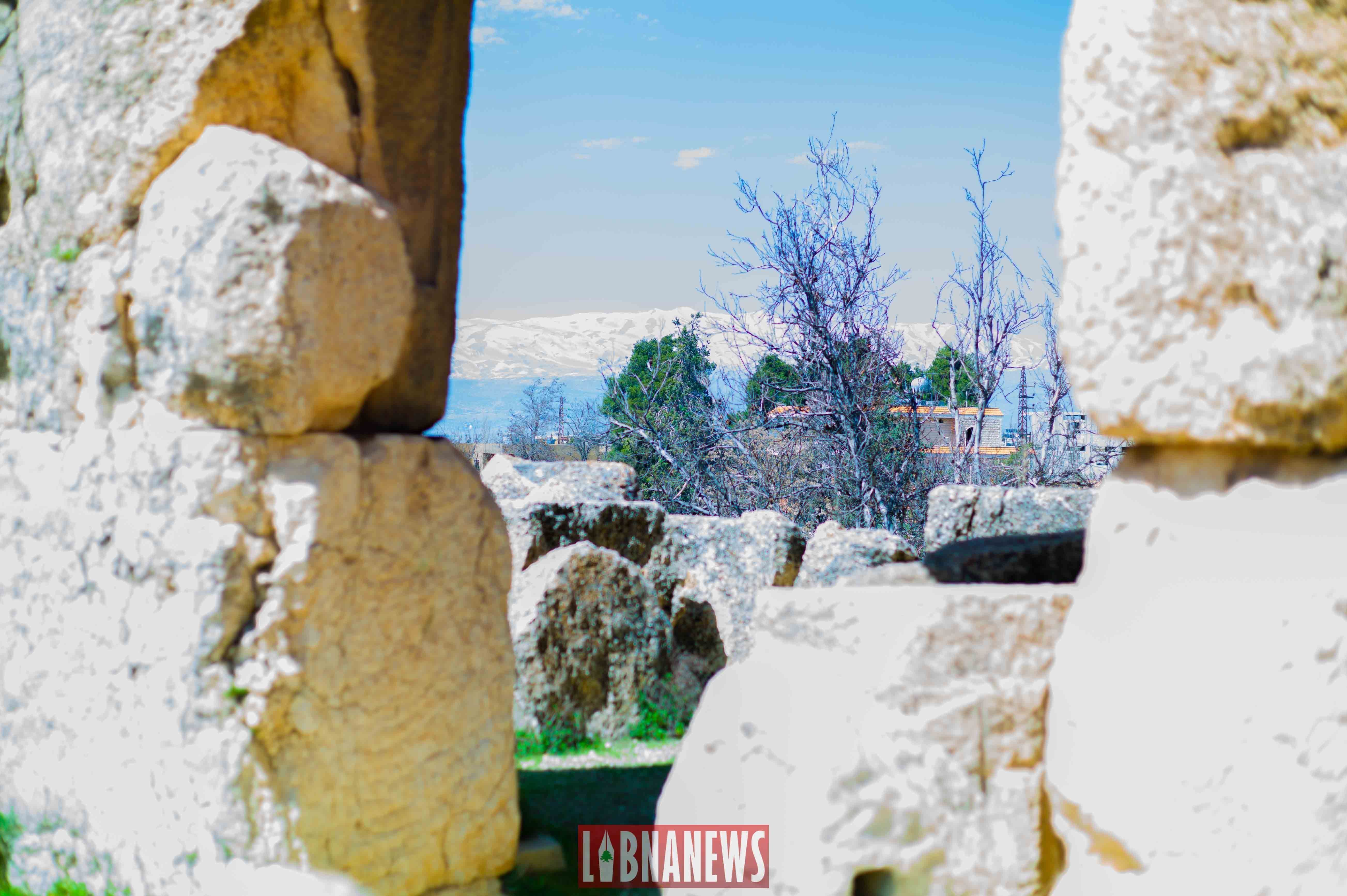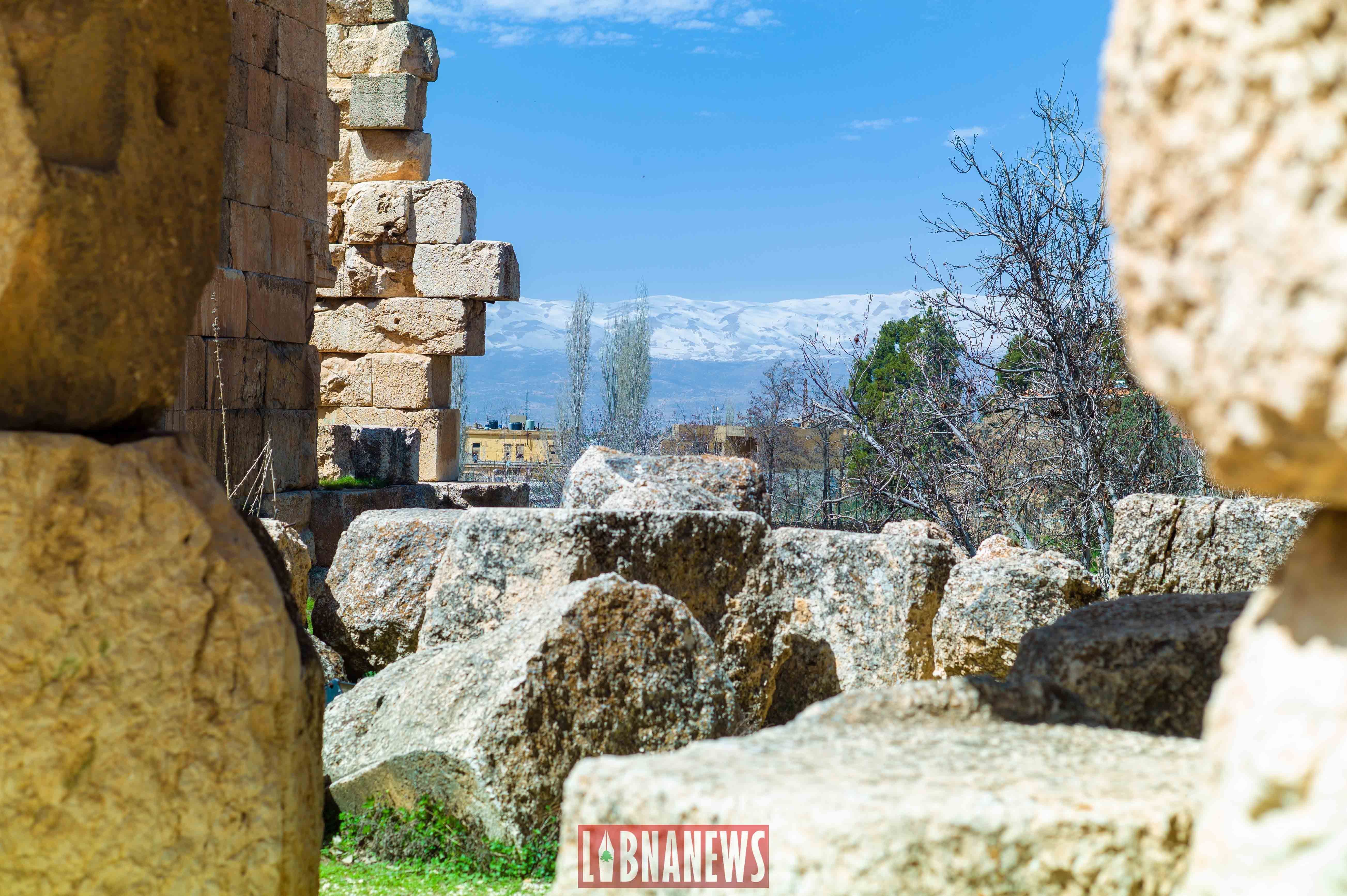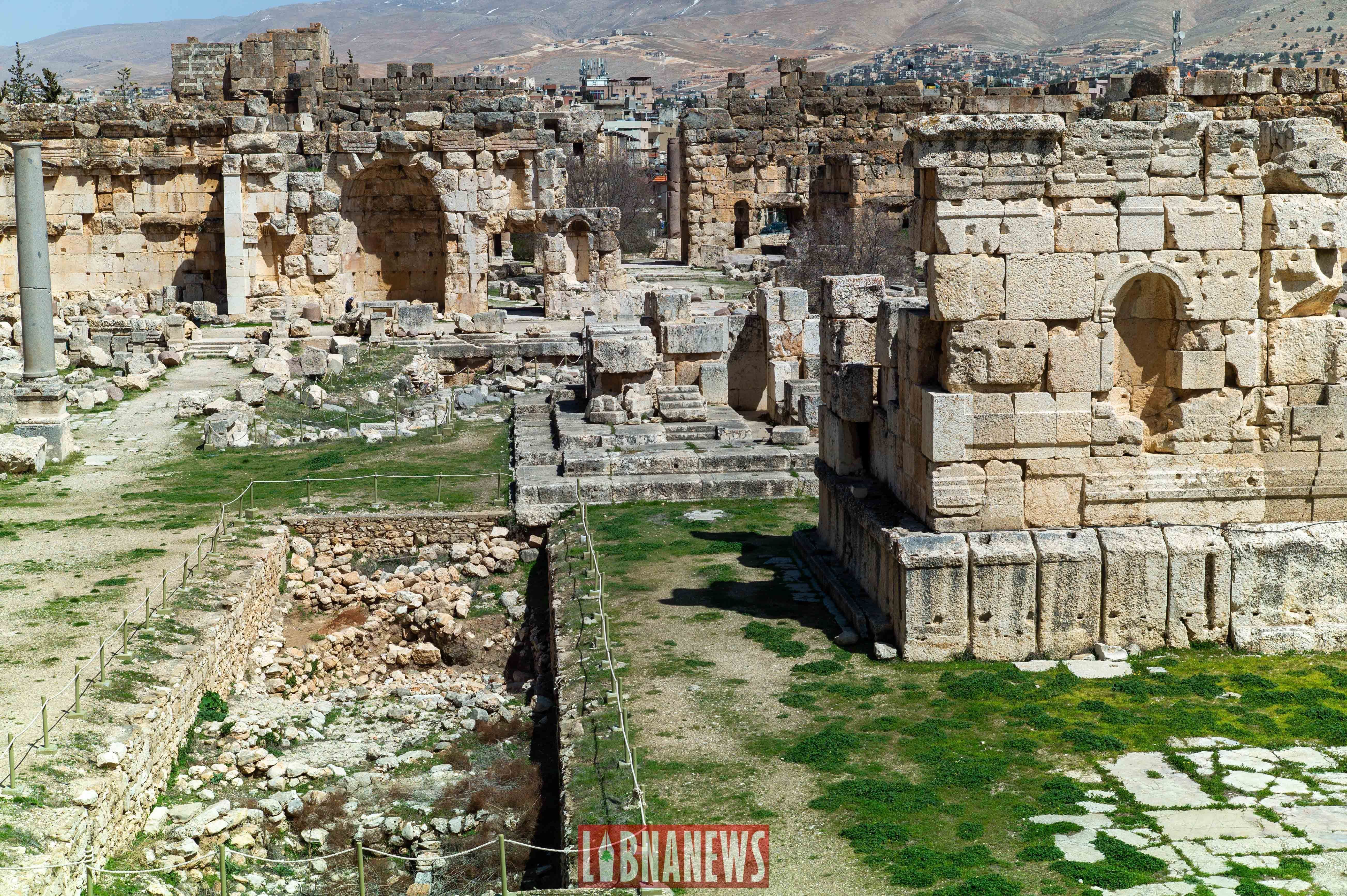 La cour hexagonale était elle-même recouverte d’une toiture faite en bois de cèdre à l’époque romaine. De loin, on aperçoit la chaine du Mont Liban et même la neige, du moins, ce qu’il en reste en été.