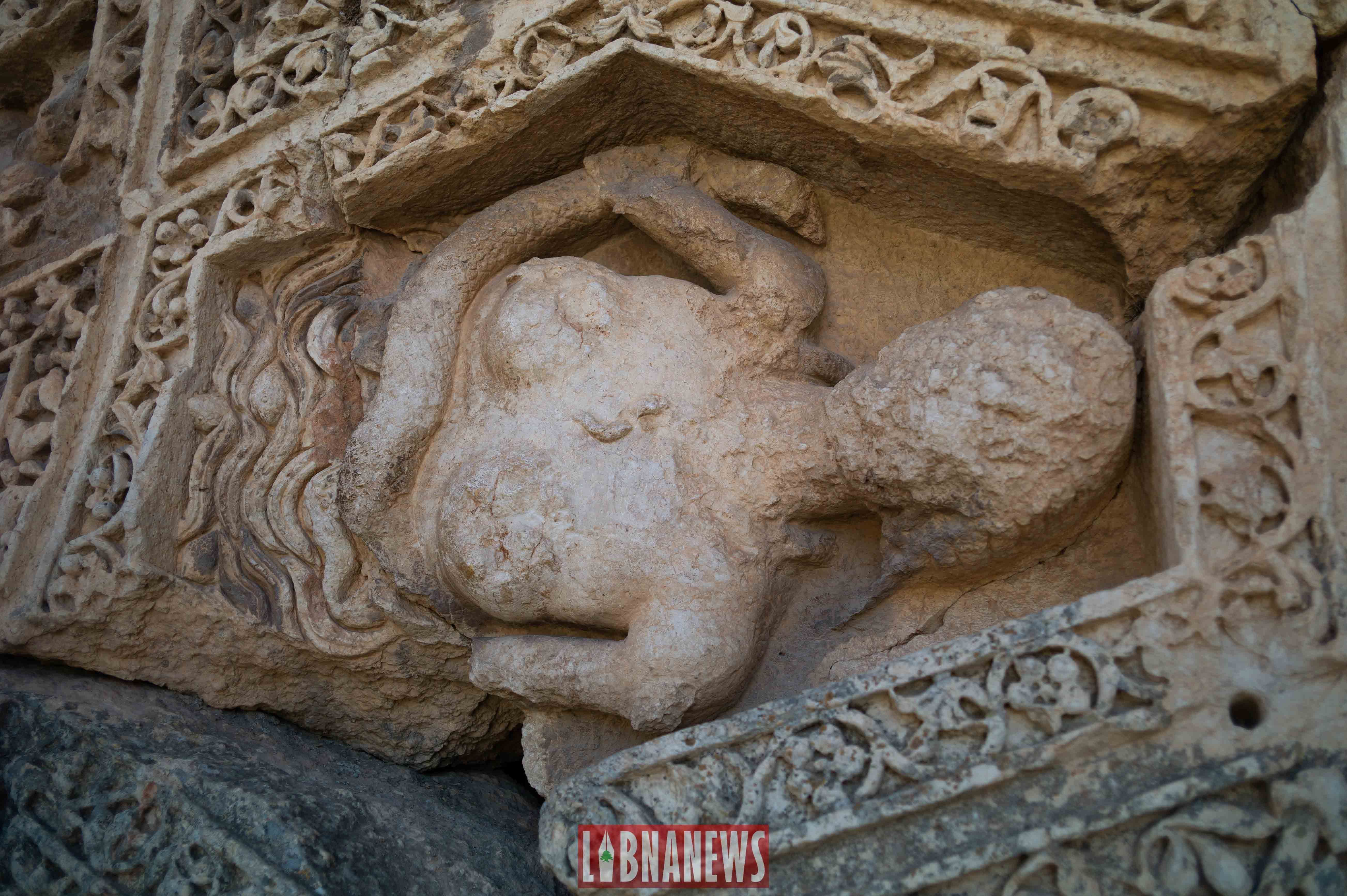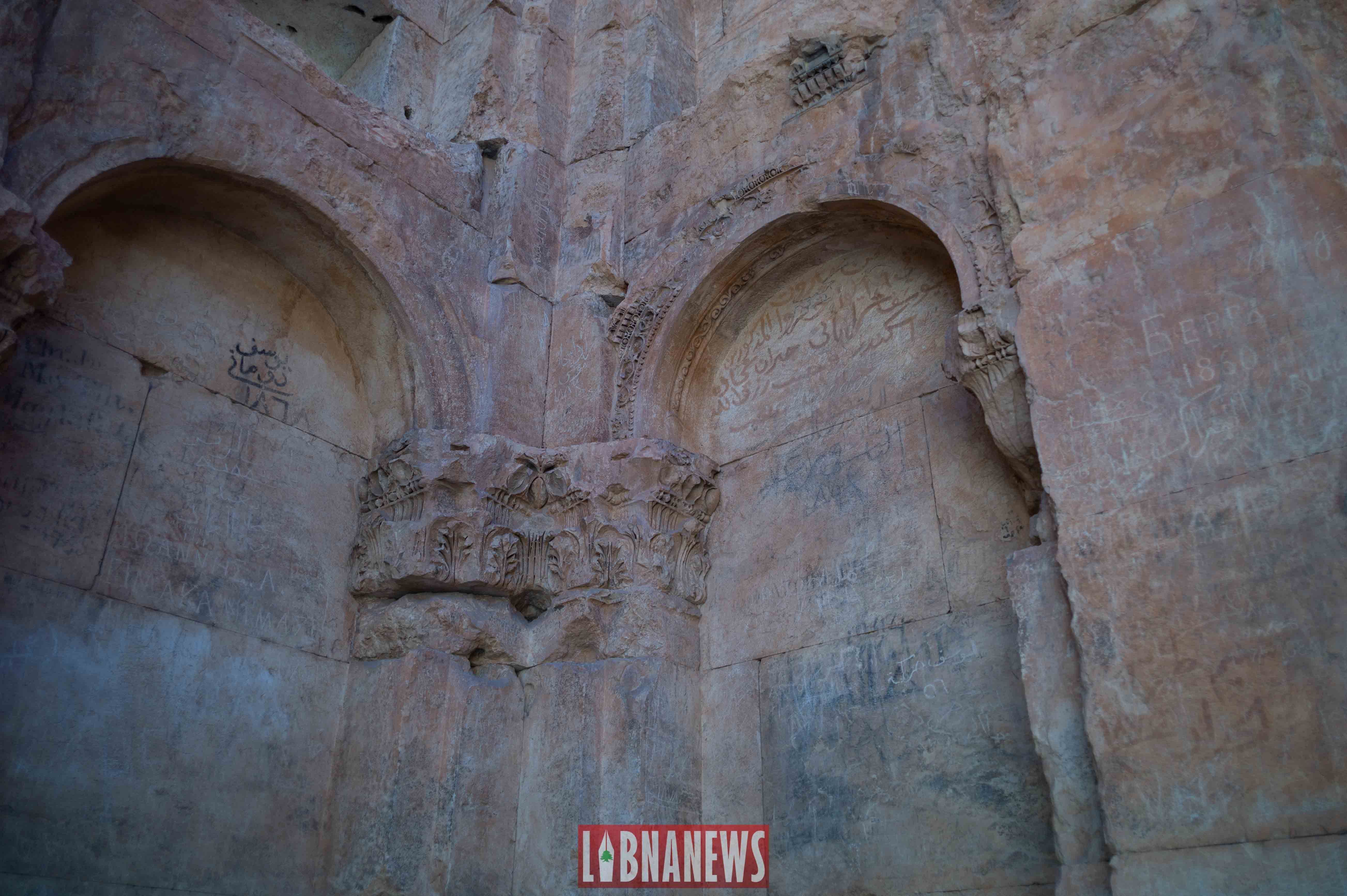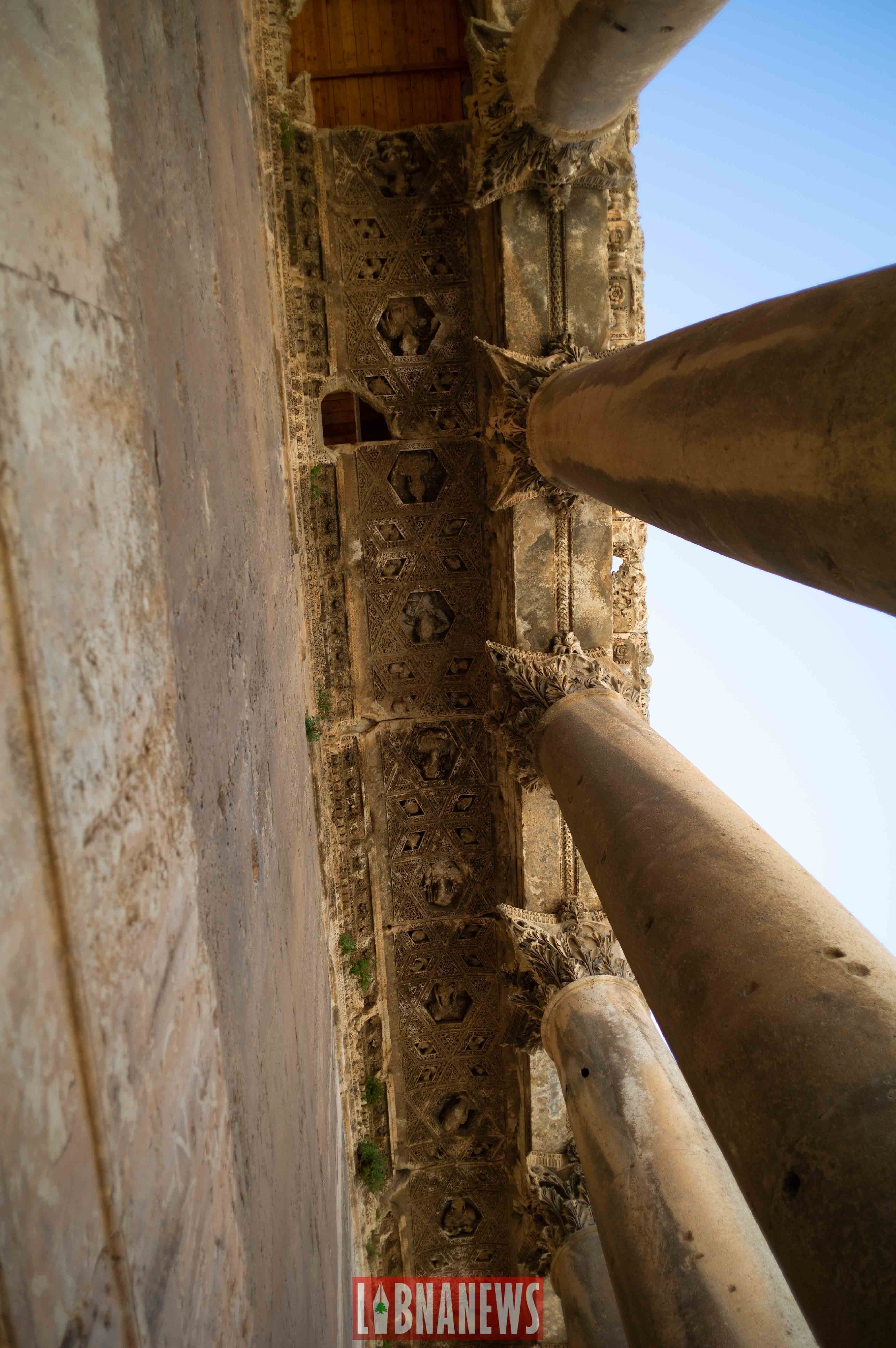 La cour hexagonale était elle-même recouverte d’une toiture faite en bois de cèdre à l’époque romaine. De loin, on aperçoit la chaine du Mont Liban et même la neige, du moins, ce qu’il en reste en été.