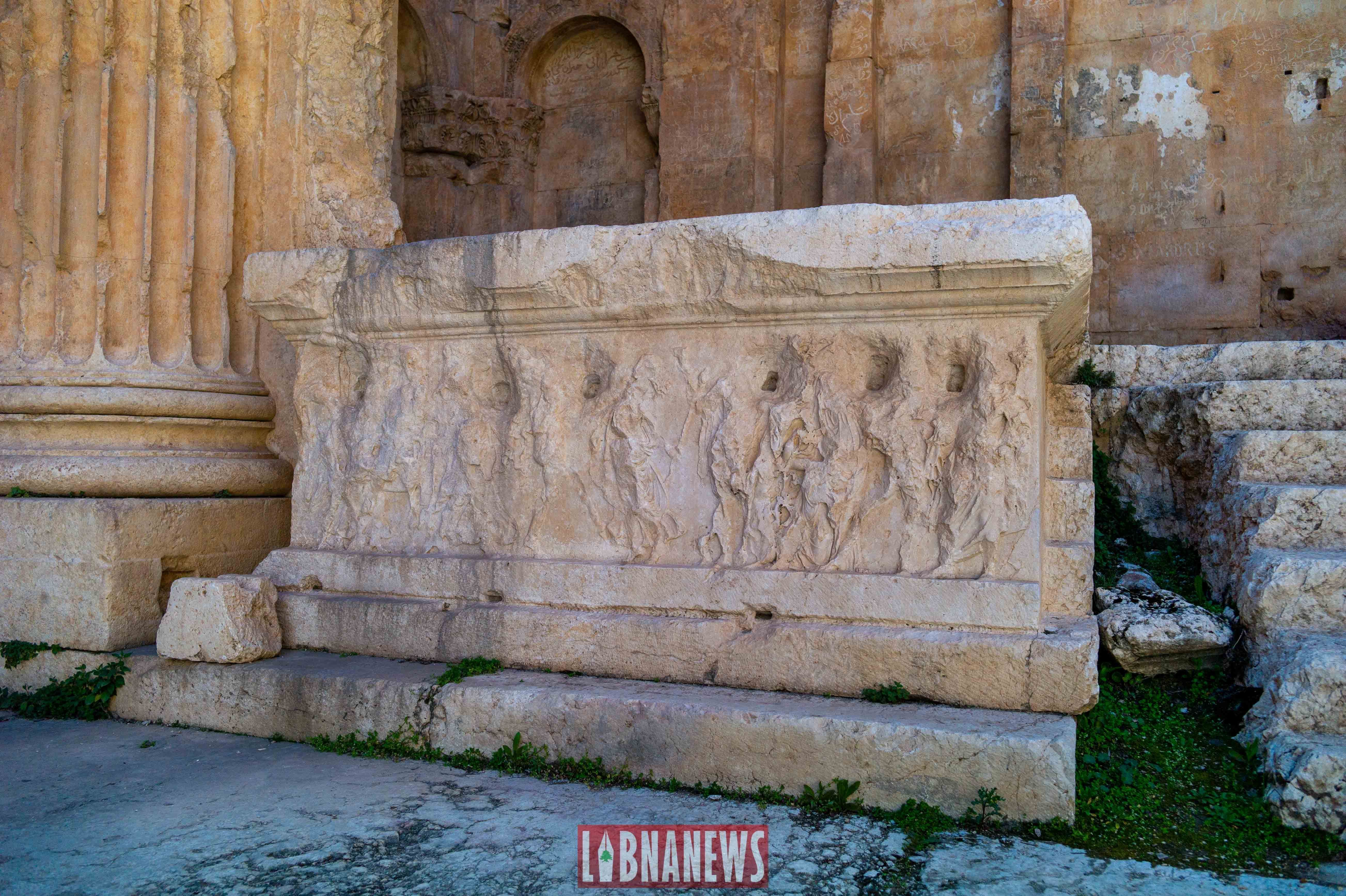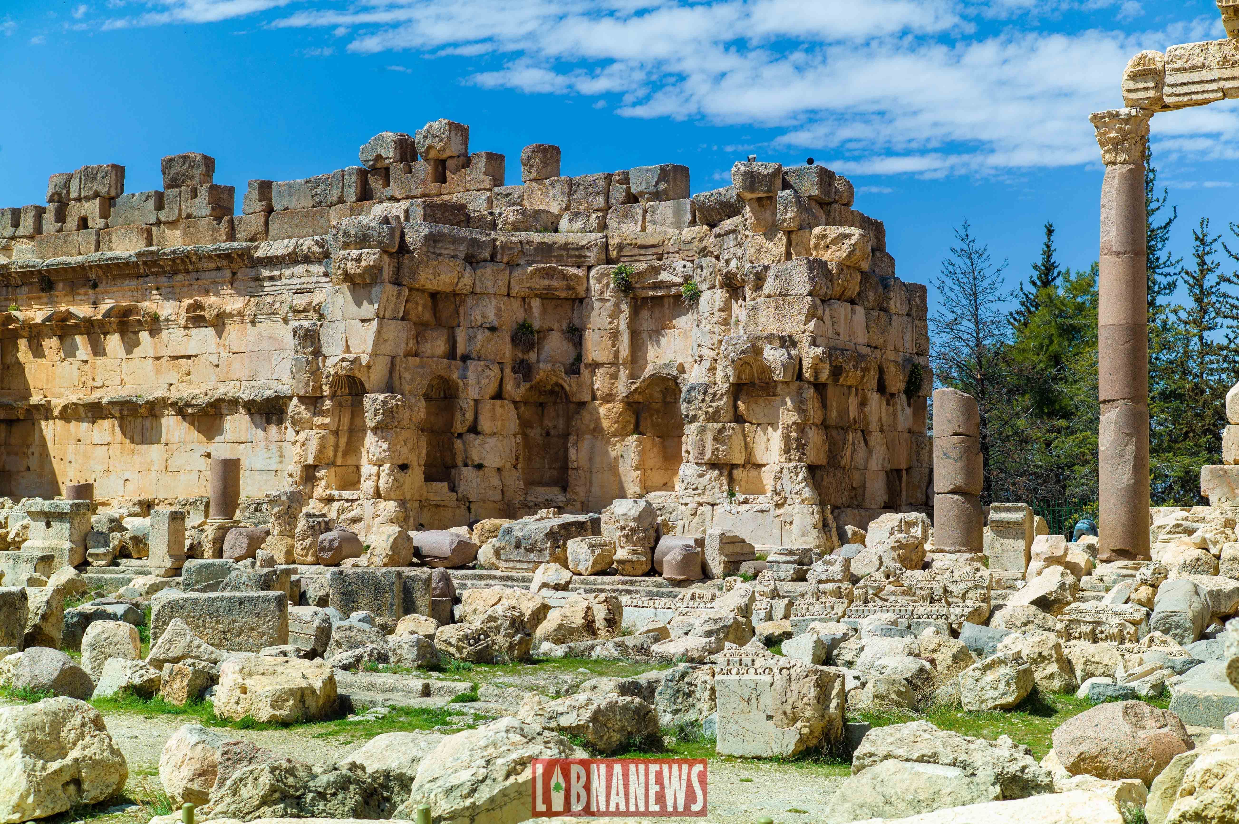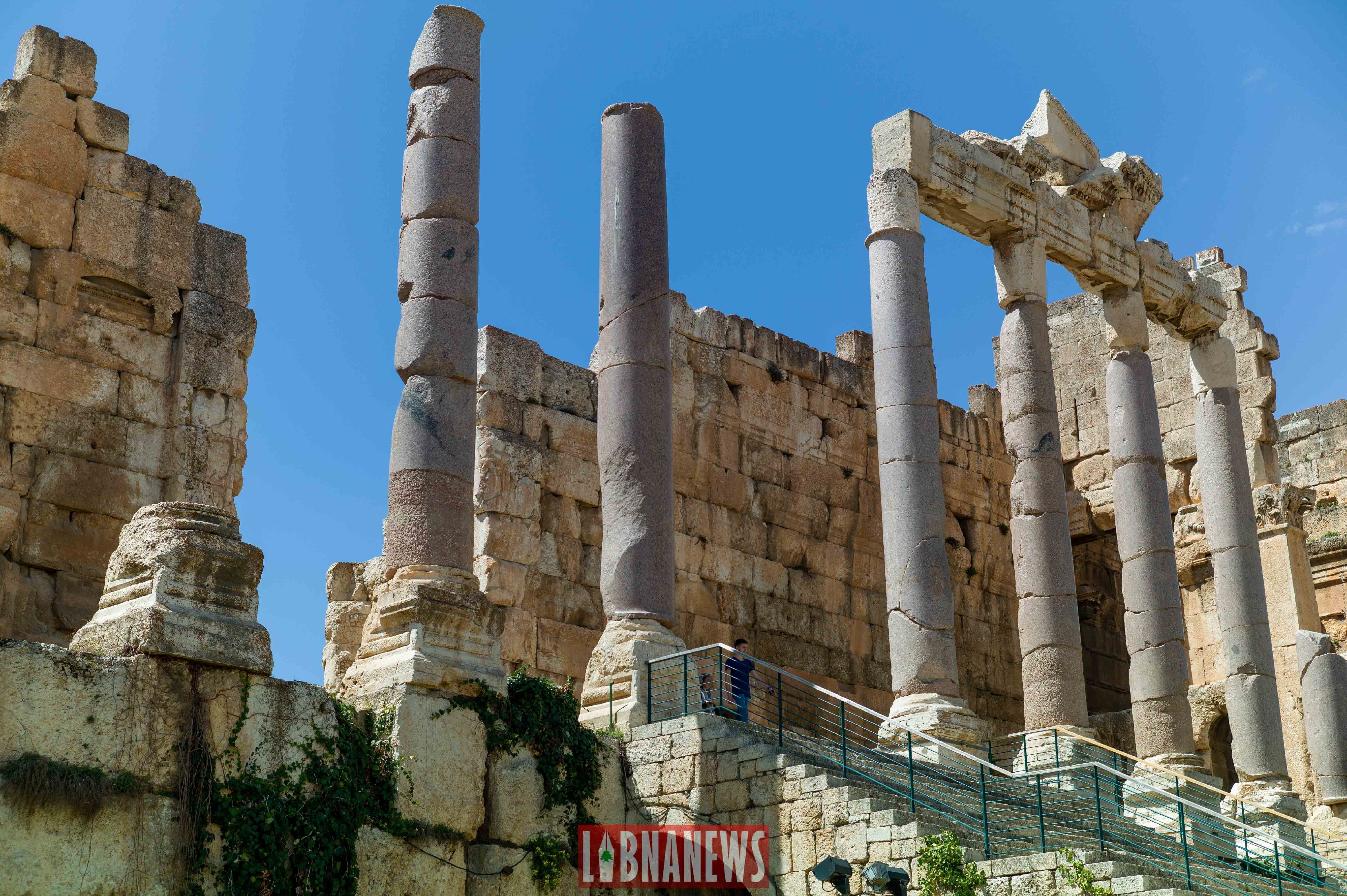 Un peu plus loin, le temple de Bacchus, un des mieux conservés de cette époque. Sa façade est ornée de colonnes en granite rose et de statues de divinités romaines. Il a été construit au 2er siècle av. J.-C. et mesure environ 50 mètres de long sur 30 mètres de large.