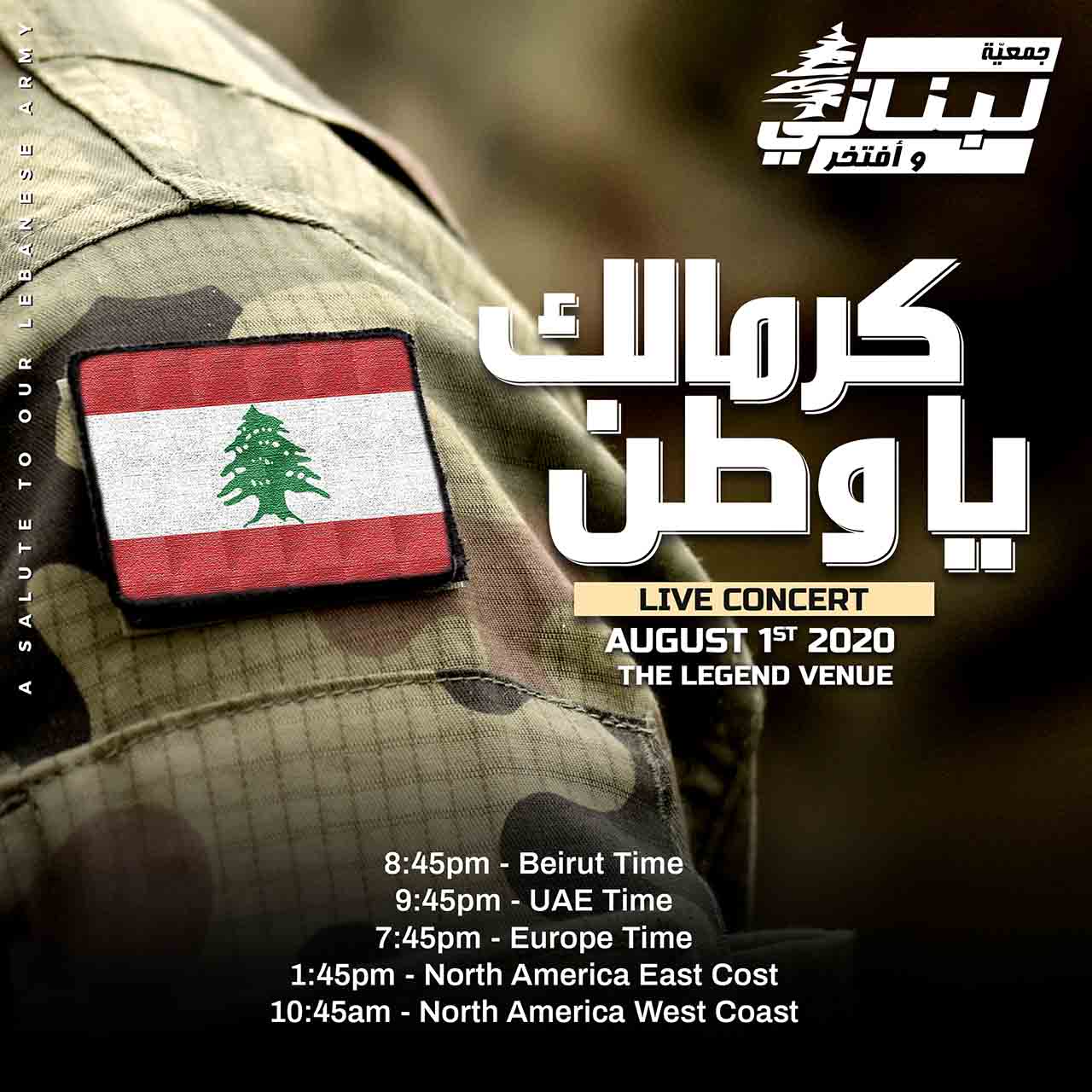 En matière de sécurité, de souveraineté et de nationalisme, rien ne vaut la mission des forces armées de notre pays, qui ne reculent devant rien pour protéger notre terre et donner au peuple la paix et la sécurité. A cet effet, et en guise de message de remerciement, l’ONG «Libanais et fier» rend hommage à nos Forces armées, à l’occasion de leur 75e anniversaire, le 1er août 2020 dans un concert en direct à 20h45, L’heure de Beyrouth, diffusé sur toutes les télévisions locales, pour rendre hommage à nos héros.