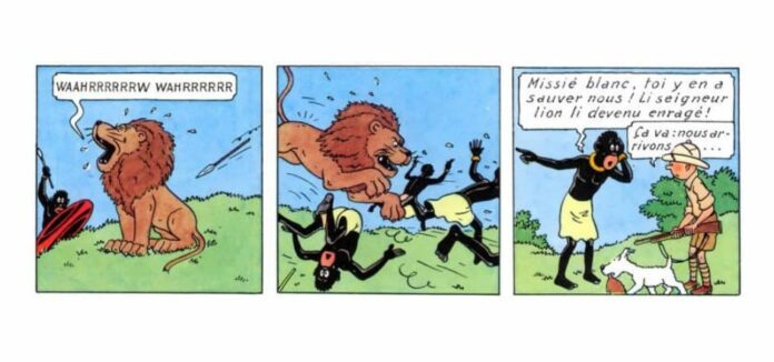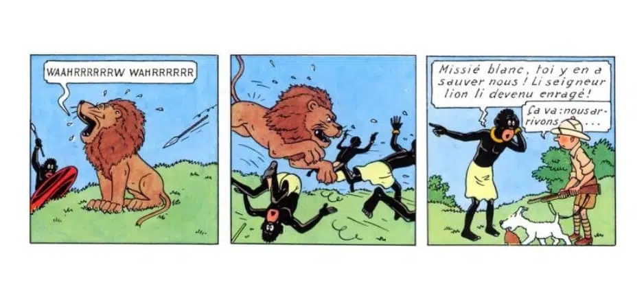 Pour une étude du “petit nègre” en BD (et bien sûr chez Hergé), un article d’A. Costantini, en ligne: http://publifarum.farum.it/ezine_articles.php?art_id=207 …, très précis, avec illustrations.