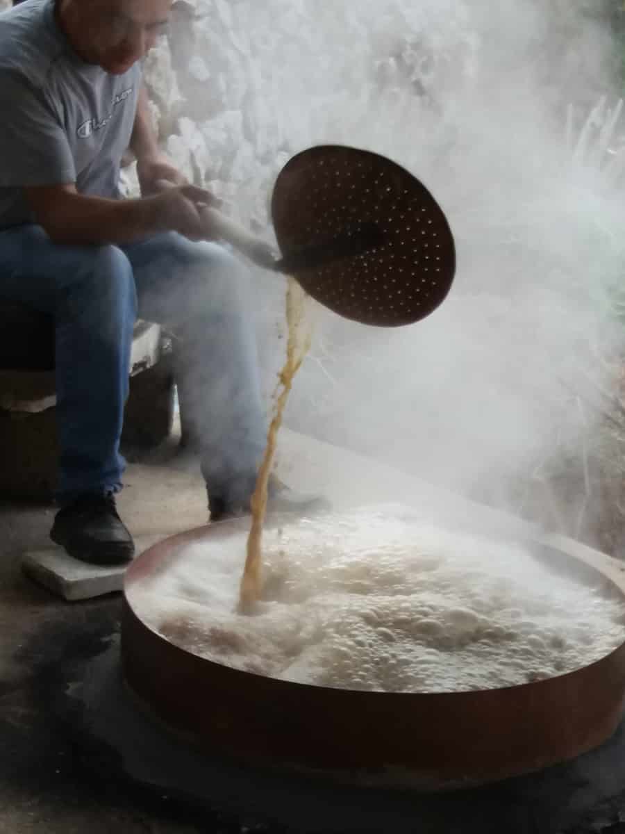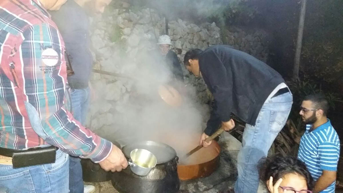 Aux grappes est mélangée une terre blanche appelée Houwwara. Chez les Samaha le pressoir en bois est vieux ; un vrai trésor. C’est là que les grappes une fois piétinées y sont mis pour en extraire tout leur jus. Il est recueilli au tamis dans un grand bassin. Transporté au chaudron, le liquide va bouillir pour être porté ensuite dans un bassin. Alors qu’on le laisse reposer deux heures afin de permettre aux impuretés de remonter à la surface, un délicieux parfum de sucre caramélisé émane. Le liquide sera encore une fois transporté au chaudron ; il sera chauffé pendant quatre heures environ afin de le transformer en mélasse. Il est presque minuit, et toute la famille attend patiemment ce liquide épais et sirupeux. La mélasse sera incorporée dans un gâteau sec, confiture de figue, et bien d’autres délices. Il y en aura assez pour passer un hiver en … douceur.