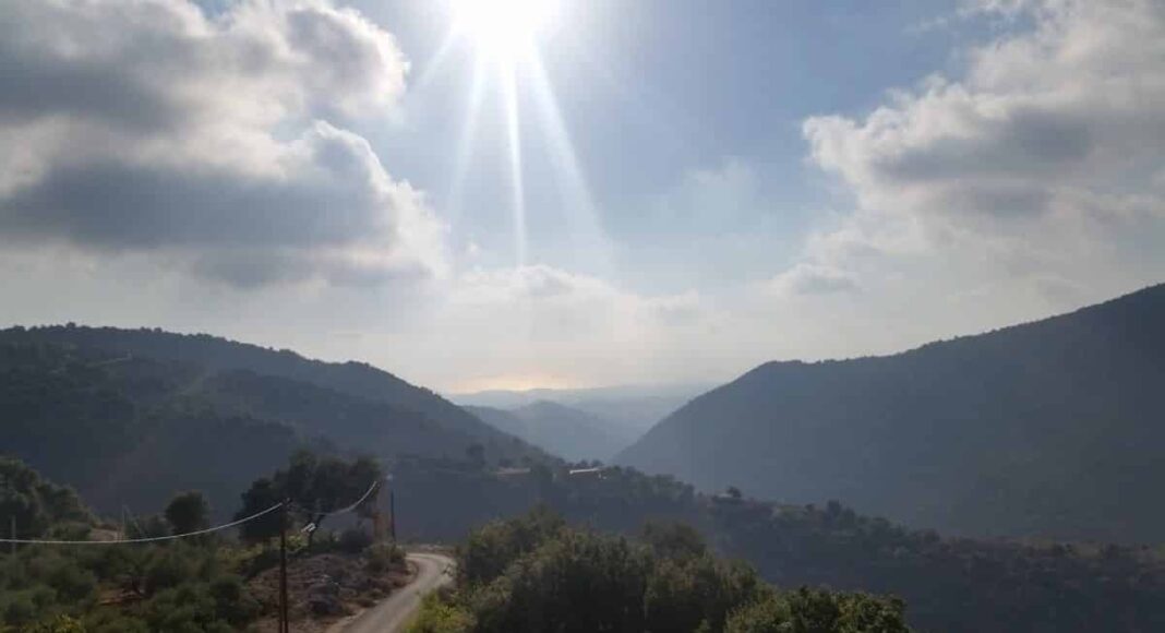 A Bkessine, j’ai allumé une bougie, à l’église de Mar Takla. Les pins parasols festonnent les lignes de crête et la forêt recouvre d’un tapis le doux vallonnement des collines qui se croisent jusqu’à la mer. Cette nuit, j’ai fait un rêve. Assise au sommet du monde derrière trois arcades, et le dégradé de bleu se déclinait à l’infini.