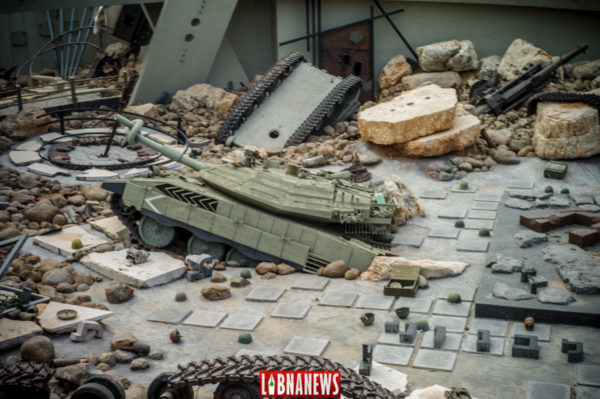 Después de los equipos y máquinas militares israelíes, las armas de la Resistencia Libanesa – principalmente de fabricación soviética – utilizadas por maniquíes a lo largo de viejas trincheras que narran una lucha heroica, salpicada aquí y allá de ramos de flores en homenaje a los combatientes desaparecidos. Podemos ver a enfermeras tratando heridas de guerra en una emergencia, instalando los famosos Katyuschas y otros órganos de Stalin con dispositivos de disparo remoto, algunos de los cuales todavía estaban desplegados durante el conflicto de julio de 2006. ¿Cuál es el punto de bombardear lugares vacíos después de que se hayan disparado cohetes cuando sus sirvientes ya están lejos?