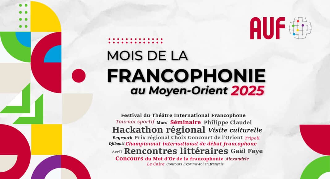 La Francophonie est célébrée chaque année en mars à travers le monde et au Moyen-Orient, pour mettre en avant la richesse des usages de la langue française et des expertises francophones. L’Agence Universitaire de la Francophonie au Moyen-Orient participe pleinement à cette dynamique en proposant une programmation variée conçue pour toucher un large public, et notamment les jeunes. Cette année, en raison de la simultanéité du mois de Ramadan en mars, certaines activités se prolongeront jusqu’en avril afin de permettre à chacun d’y participer pleinement.