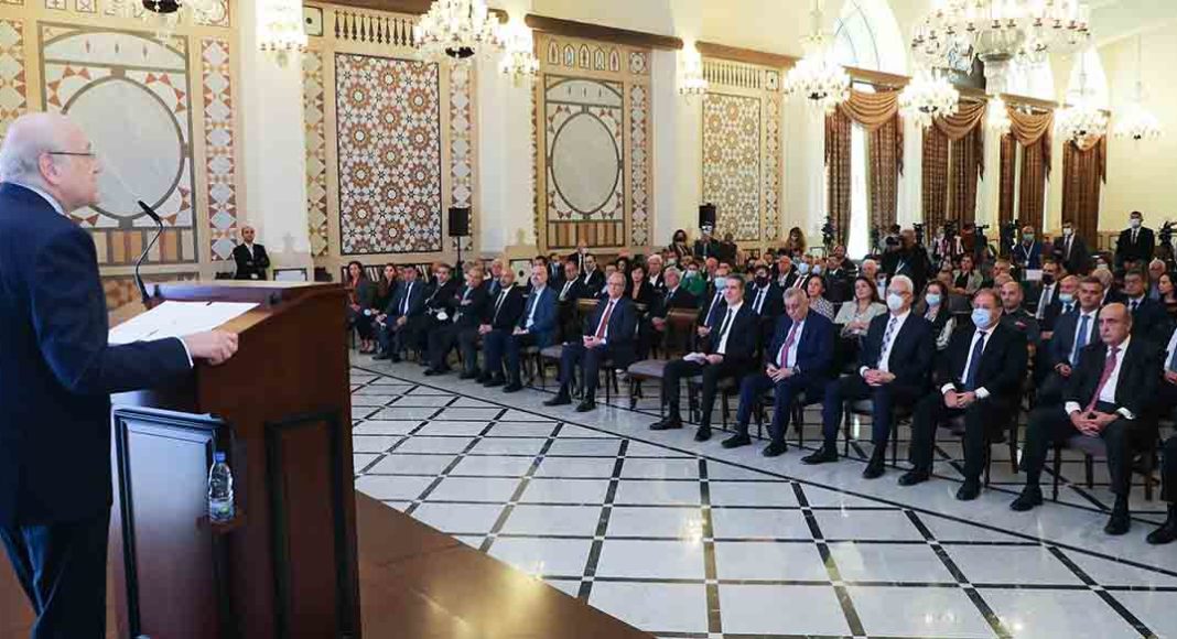 Najib Mikati dénonce également « ceux qui considèrent que le Liban doit être enlevé de son environnement arabe, et plus particulièrement de sa proximité avec l’Arabie saoudite, reconnaissant que l’opinion personnelle de Georges Cordahi a amené le Liban dans une position dangereuse.