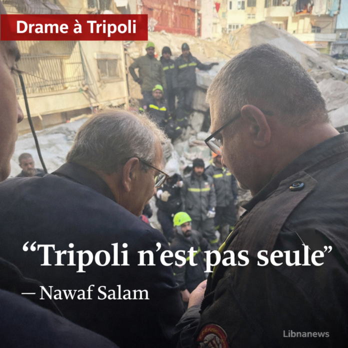 Le Premier ministre libanais, Nawaf Salam, s’est rendu sur le site de l’effondrement d’un immeuble dans le quartier de Qobbeh, à Tripoli, pour une inspection terrain qui souligne les défis persistants en matière de sécurité des bâtiments. Cette visite intervient alors que les équipes de secours poursuivent leurs efforts pour localiser une dernière personne disparue, dans un contexte où la ville du Nord-Liban fait face à une multiplication des risques structurels.
