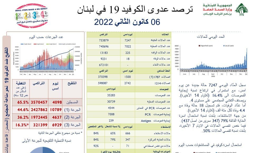 Lebanese authorities announce that 7,247 people have been diagnosed positive for COVID19 in the past 24 hours. 18 people also died during this same period.