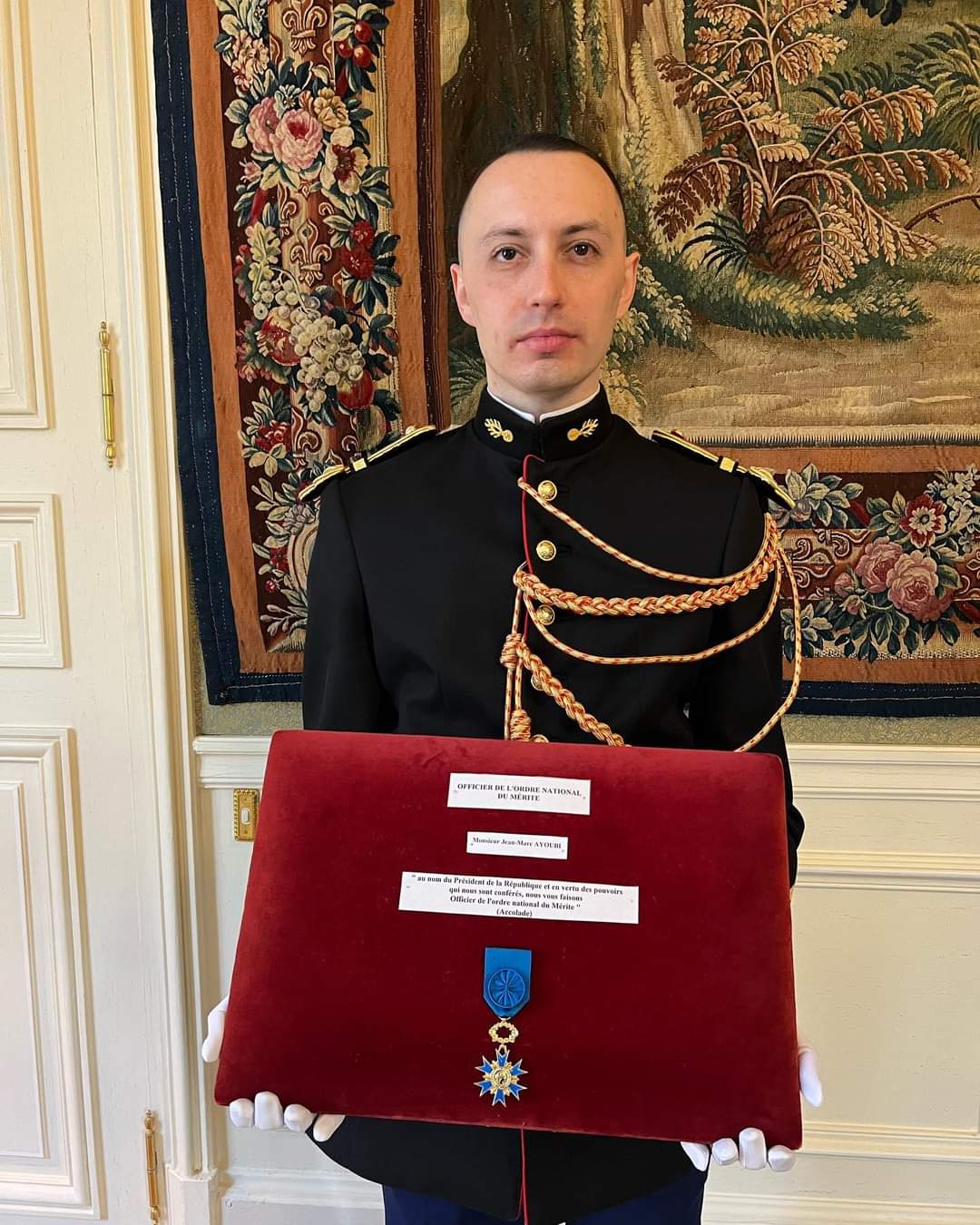 « Professeur Jean-Marc Ayoubi, au nom du Président de la République et en vertu des pouvoirs qui nous sont conférés, nous vous faisons Officier de l’Ordre National du Mérite. » Sébastien Lecornu, ministre des Armées de France.