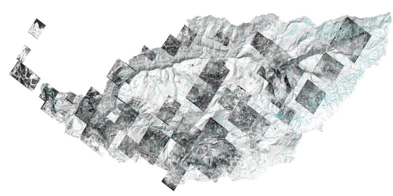 - 1956, à travers une campagne de photographie aériennes, soit une génération après la grande famine de la première guerre mondiale dont les traces sont encore présentes dans le paysage, et quelques années avant la première série de cartes au 1/20 000 établie par l’armée libanaise en 1963.