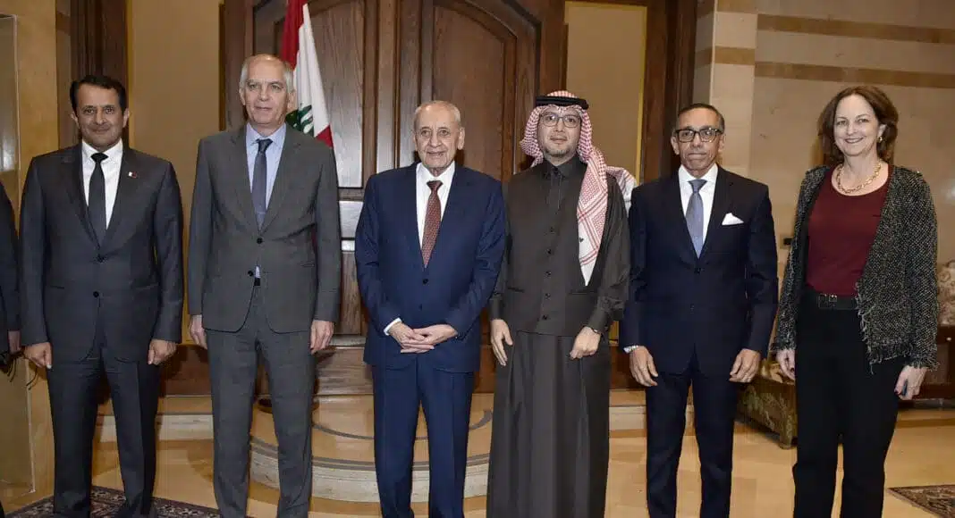 Une rencontre de haute importance a eu lieu, en présence du Président du Parlement libanais, Nabih Berri et des ambassadeurs des pays membres de la commission quintuple – États-Unis (Lisa Johnson), France (Hervé Magro), Arabie Saoudite (Walid Bukhari), Égypte (Alaa Moussa) et Qatar (Saud bin Abdulrahman Al Thani).