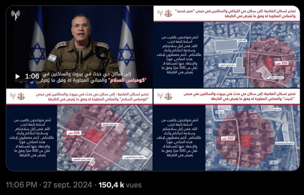 L’utilisation de bombes de 2 tonnes dans des conflits armés, en particulier dans des zones urbaines densément peuplées comme la banlieue sud de Beyrouth ce 27 septembre sur une zone densément peuplée, suscite de nombreuses interrogations quant à leurs effets dévastateurs, leur légalité en droit international et les phénomènes physiques observés lors de leur explosion. Ce phénomène a été particulièrement notable dans le cadre des tensions actuelles entre Israël et le Hezbollah, avec des frappes aériennes massives sur des bastions du groupe chiite.