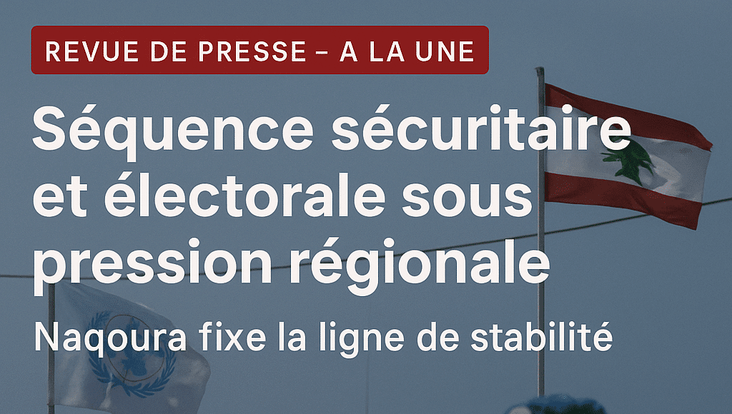 Le cadrage de la semaine s’est imposé depuis Naqoura, où la délégation américaine conduite par Morgan Ortagus a réuni le comité de suivi du cessez-le-feu. Selon Al 3arabi Al Jadid, 30 October 2025, la séquence a validé une lecture prioritaire: contenir tout dérapage militaire au Sud et ancrer le principe de l’exclusivité des armes aux mains de l’État, tandis que l’armée a présenté un rapport détaillant des fermetures de dépôts illégaux et des opérations depuis l’entrée en vigueur du cessez-le-feu le 27 novembre 2024. Al Joumhouriyat, 30 October 2025, résume cette ligne sous la formule «Hors sarm d’abord», en y ajoutant une perspective politique: la préparation méthodique d’un cap de négociation si les conditions techniques se stabilisent et si la frontière reste calme. Al Akhbar, 30 October 2025, note de son côté une «recalibration» de l’approche de Washington, avec une vigilance accrue sur l’exécution concrète par les institutions libanaises et un signal selon lequel le suivi diplomatique s’intensifiera dans les prochains jours. Dans ce cadre, la coordination civile-militaire reste présentée comme un socle, alors que la Présidence de la République, assurée par Joseph Aoun, et la Présidence du Conseil, assurée par Nawaf Salam, sont placées face à une séquence d’arbitrages sensibles, de sécurité à politique.