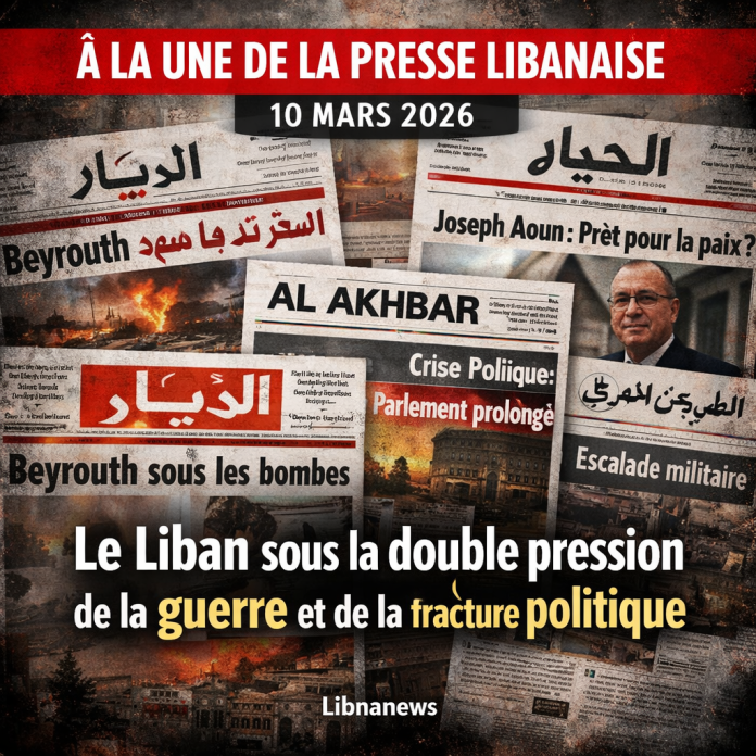 À la une, la guerre n’efface pas la politique intérieure. Elle la rend plus visible. Ad Diyar du 10 mars 2026 parle d’un fossé devenu dangereux entre la résistance et le pouvoir politique. Le journal décrit un moment où tous les acteurs avancent au bord du précipice. Il insiste sur le caractère inédit de certaines positions prises par l’autorité politique, alors que le pays subit les frappes et que la scène régionale s’enflamme.