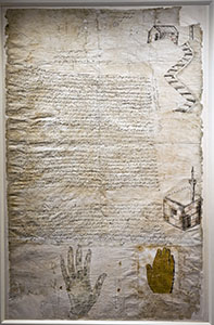 [14] Outre le manuscrit du monastère Sainte Catherine ces reliques sont constituées notamment du turban de Joseph, du bâton de Moïse, de l’épée de David, de parchemins ayant appartenu à l’apôtre Jean, de l’empreinte de pied de Mahomet de ses armes, de son manteau et de sa Bannière