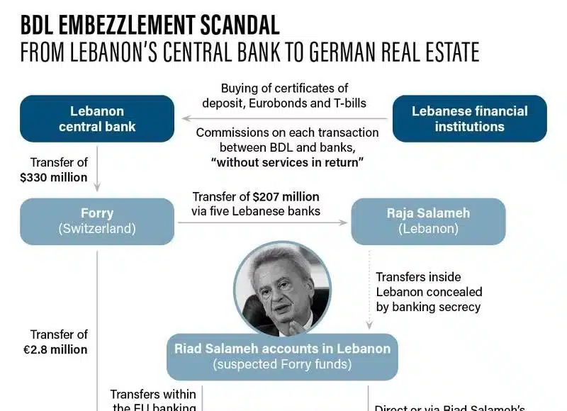 Les enquêteurs européens soupçonnent que les fonds en question ont été initialement détournés au Liban via Forry, soupçonné d’être une société écran qui a servi de véhicule de blanchiment pour siphonner plus de 330 millions de dollars d’argent public.