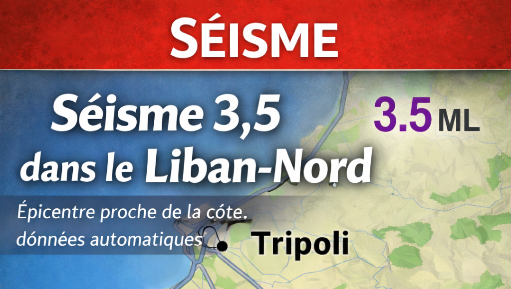 Un séisme de magnitude 3,5 sur l’échelle locale a été détecté le 18 janvier 2026 à 11h01 UTC, soit 12h01 heure locale au Liban, dans la région désignée comme la mer Méditerranée orientale, près du Liban-Nord. L’épicentre a été localisé à proximité de la côte, dans une zone montagneuse au sud de Tripoli, près d’El Bahara, avec une profondeur estimée à 5 kilomètres. Les données initiales émanent de l’Observatoire de Kandilli et de l’Institut de recherche sur les tremblements de terre en Turquie, indiquant un événement automatique sujet à confirmation ultérieure. Ce séisme s’inscrit dans une activité tectonique régulière le long de la faille du Levant, qui traverse le pays du sud au nord.