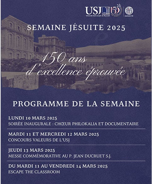 Oui, car elle coïncide avec le 150e anniversaire de l’Université Saint-Joseph (USJ) et les 50 ans de la publication de la Charte fondamentale qui guide nos pas et oriente le travail de l’Université. Cet événement s’inscrit dans le cadre des célébrations du siècle et demi d’existence de l’université, soulignant ainsi le rôle central des jésuites dans la fondation et le développement de cette institution emblématique.