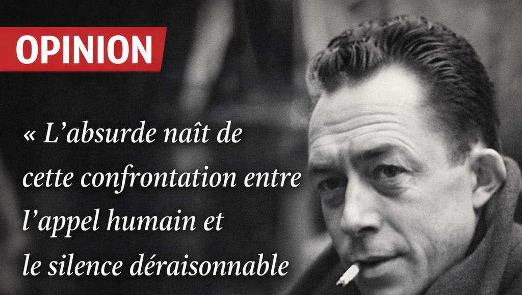« C’est dans son premier essai, Le Mythe de Sisyphe (1942), que Camus définit l’absurde. Loin de voir en lui un raisonnement insensé, il l’identifie à un sentiment que « n’importe quel homme » peut éprouver « au détour de n’importe quelle rue » : celui de l’hostilité primitive des choses qui nous entourent et qui nous font obstacle sous différents aspects, que Camus étudie dans le chapitre justement intitulé « Les murs absurdes »….C’est constater que notre soif de connaître ne peut qu’échouer face à l’opacité du réel :« L’absurde naît de cette confrontation entre l’appel humain et le silence déraisonnable du monde. » L’“absurde” chez Camus, c’est quoi ? , Extrait de