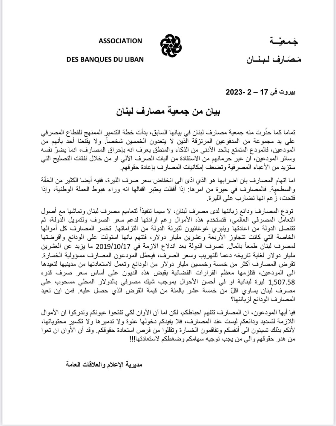 L’Association des Banques du Liban réagit aux incidents de Badaro et accuse l’état d’avoir...