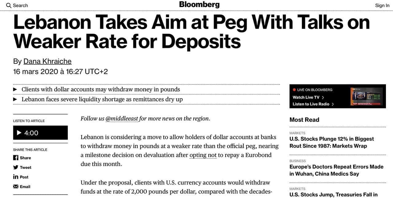 Le Liban pourrait permettre le retrait de dollars à un taux de parité supérieur...