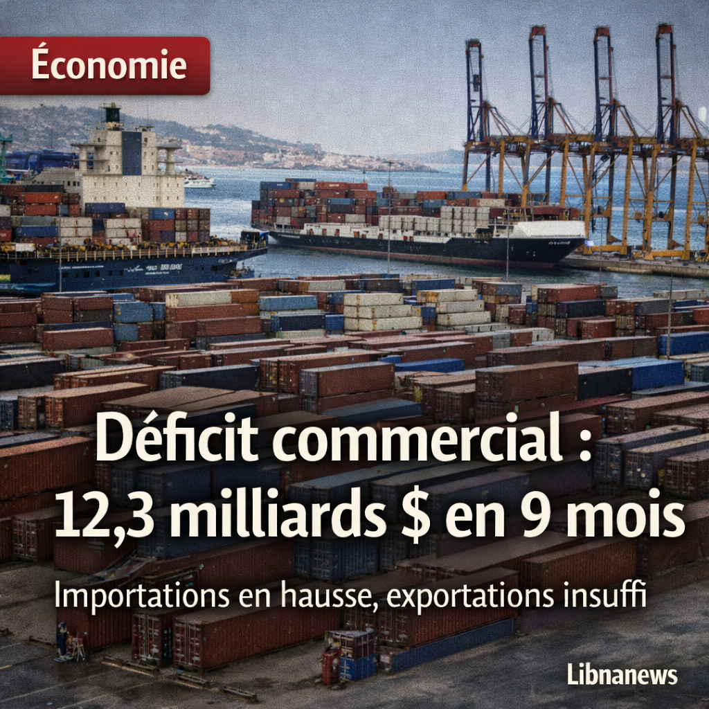 Selon les douanes libanaises, le déficit commercial du Liban atteint 12,3 milliards de dollars sur les neuf premiers mois de 2025, en hausse de 13,21%. Les importations progressent à 14,985 milliards (+15,79%) et les exportations à 2,715 milliards (+29,04%), mais la dépendance aux achats extérieurs continue de peser sur les devises.