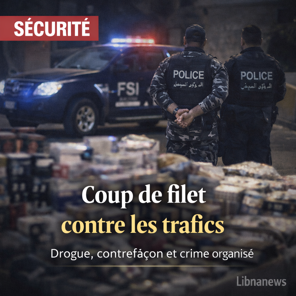 Au Liban, les forces de l’ordre intensifient les opérations contre le crime organisé: saisies massives de produits contrefaits à Beyrouth et au Mont-Liban, arrestation d’un suspect de meurtre dans le Nord, et démantèlement de réseaux de Captagon dans la Békaa. Plusieurs interpellations visent aussi les dealers urbains.