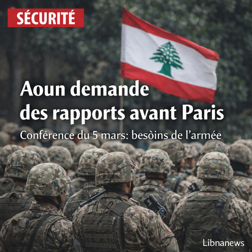 Le président Joseph Aoun a réuni à Baabda les chefs des forces de sécurité pour fixer les priorités à l’approche de la conférence de Paris du 5 mars. Il demande des rapports précis sur les besoins réels, évoque l’amélioration des salaires des militaires et met en avant modernisation, frontières, et retour de déplacés.