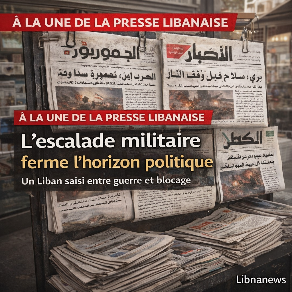 La presse libanaise du 14 mars 2026 décrit un pays pris entre escalade militaire, menaces d’invasion et blocage politique. Joseph Aoun tente de maintenir une ligne d’État, tandis que Nabih Berri et Naim Kassem refusent toute négociation avant l’arrêt des frappes, sur fond de crise régionale plus large.