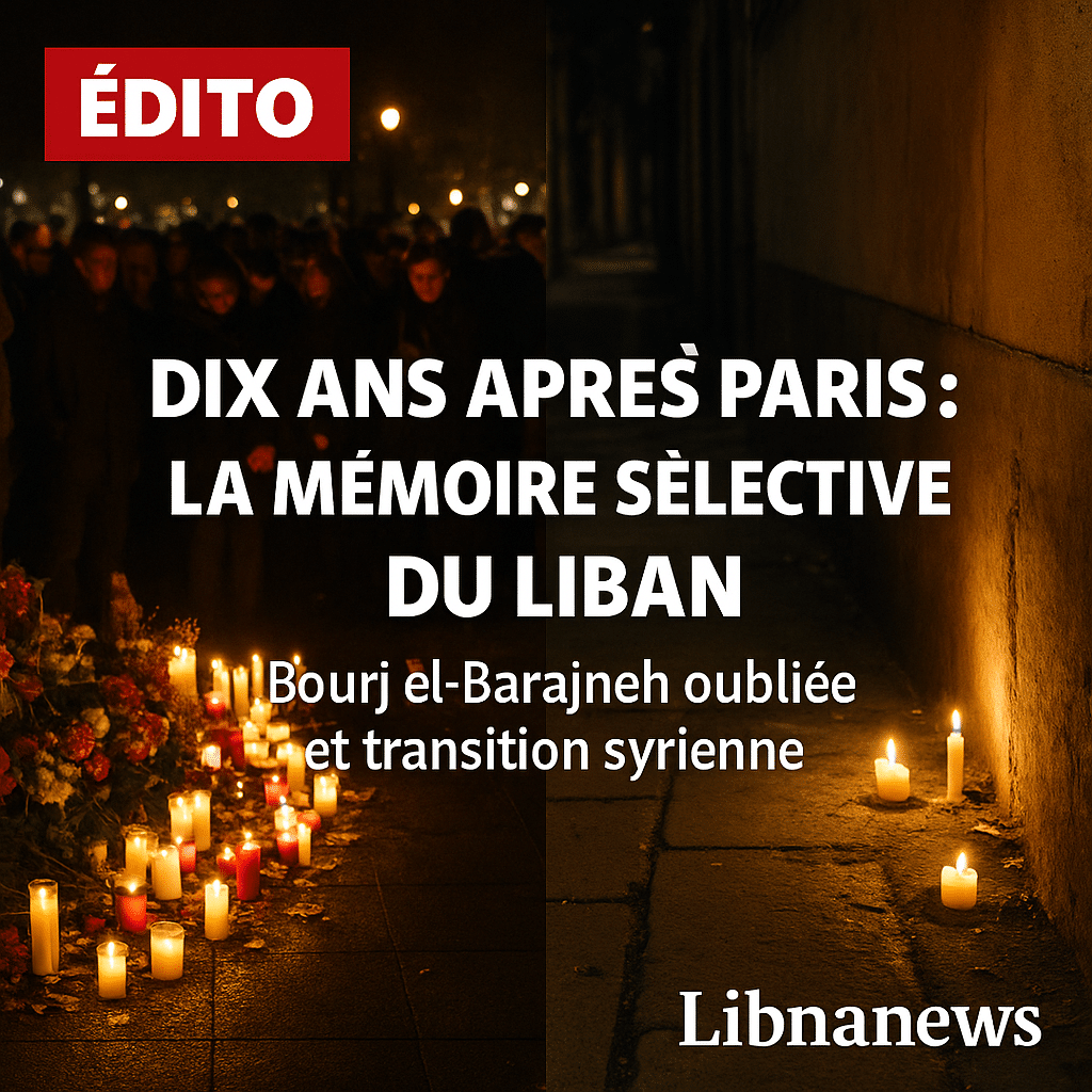 Dix ans après les attentats de Paris, le Liban regarde les cérémonies françaises en portant ses propres cicatrices: les explosions oubliées de Bourj el-Barajneh. Il s'agit de s'interroge sur une mémoire nationale sélective, qui efface ses victimes et ses responsabilités, au moment où la transition syrienne rebat les cartes sécuritaires autour du Liban.