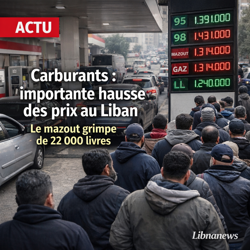 Le Liban enregistre une nouvelle hausse des carburants : l’essence 95 octanes atteint 1 391 000 livres, la 98 octanes 1 431 000, tandis que le mazout bondit de 22 000 livres à 1 314 000. Le gaz augmente aussi. Ces hausses aggravent la pression sur les ménages.