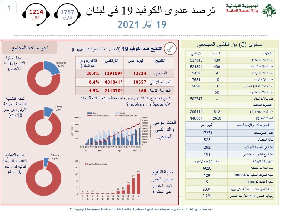 Les autorités libanaises déplorent 10 décès suite à des complications induites par le covid19 ces dernières 24 heures. 489 cas ont également été diagnostiqués....