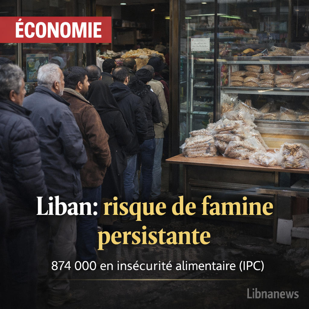 Un rapport onusien (IPC) alerte sur une insécurité alimentaire aiguë persistante au Liban: 874 000 personnes touchées entre novembre 2025 et mars 2026, dont 22 000 en phase d’urgence. Malgré une légère amélioration, coupes de l’aide, hausse des prix et dégâts du conflit maintiennent le risque de famine localisée.