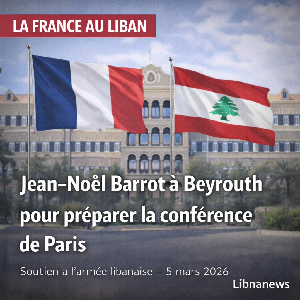 Le ministre français Jean-Noël Barrot se rend à Beyrouth les 6 et 7 février 2026 pour préparer la conférence de soutien à l’armée libanaise et aux forces de sécurité, prévue à Paris le 5 mars. Au programme : respect du cessez-le-feu, souveraineté du Liban, application de la résolution 1701 et réformes financières en vue de la reconstruction.
