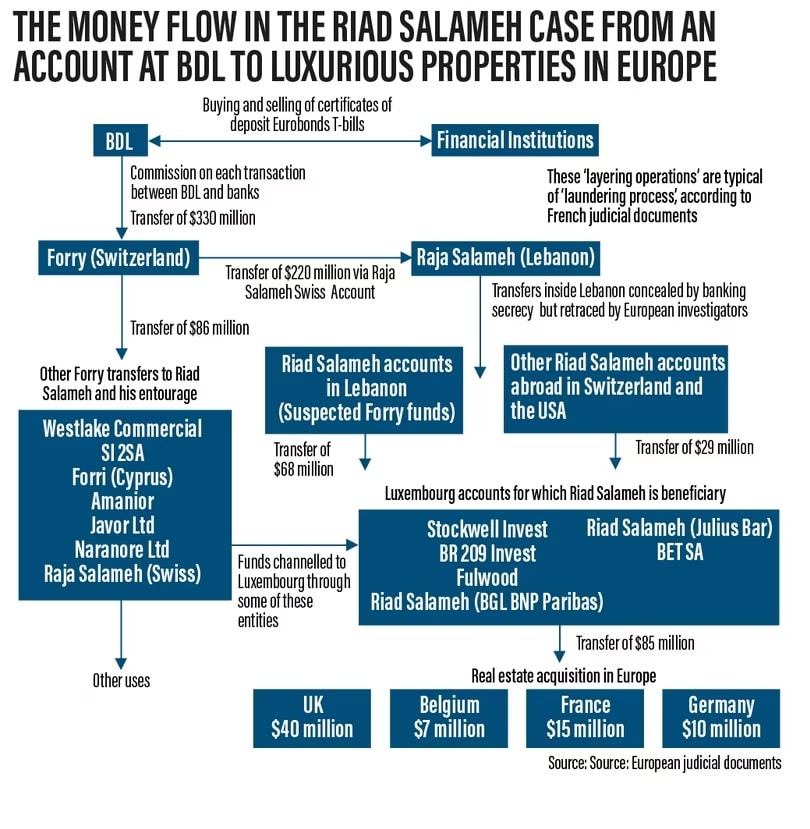 Salamé fait l'objet de multiples enquêtes européennes sur le détournement présumé de plus de 330 millions de dollars