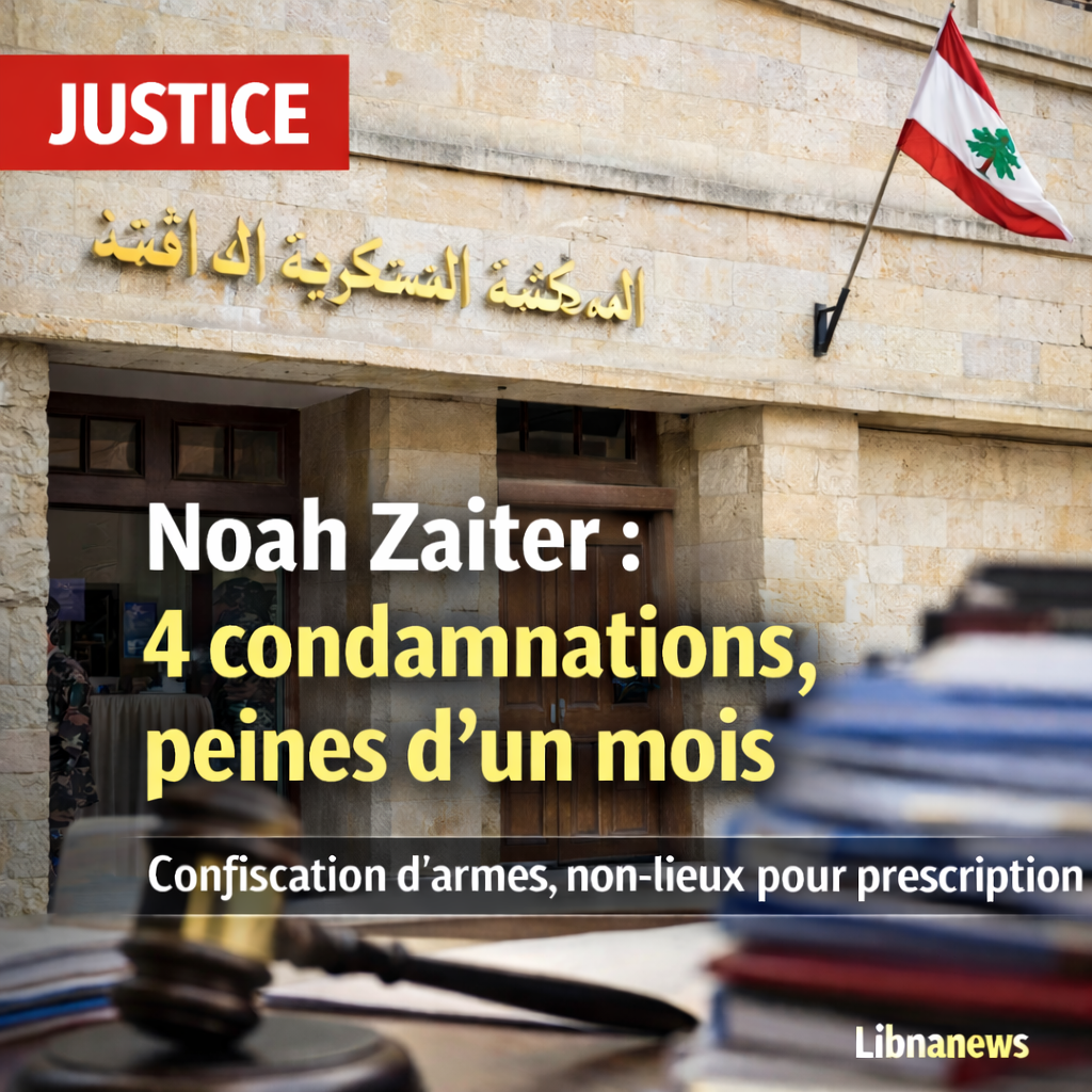 La cour militaire permanente de Beyrouth a condamné Noah Zaiter à un mois de prison pour chacune de quatre infractions, avec confiscation d’armes, munitions et matériels saisis lors de son arrestation dans la Bekaa. Trois acquittements et trente-trois non-lieux pour prescription illustrent les limites judiciaires face au crime organisé.