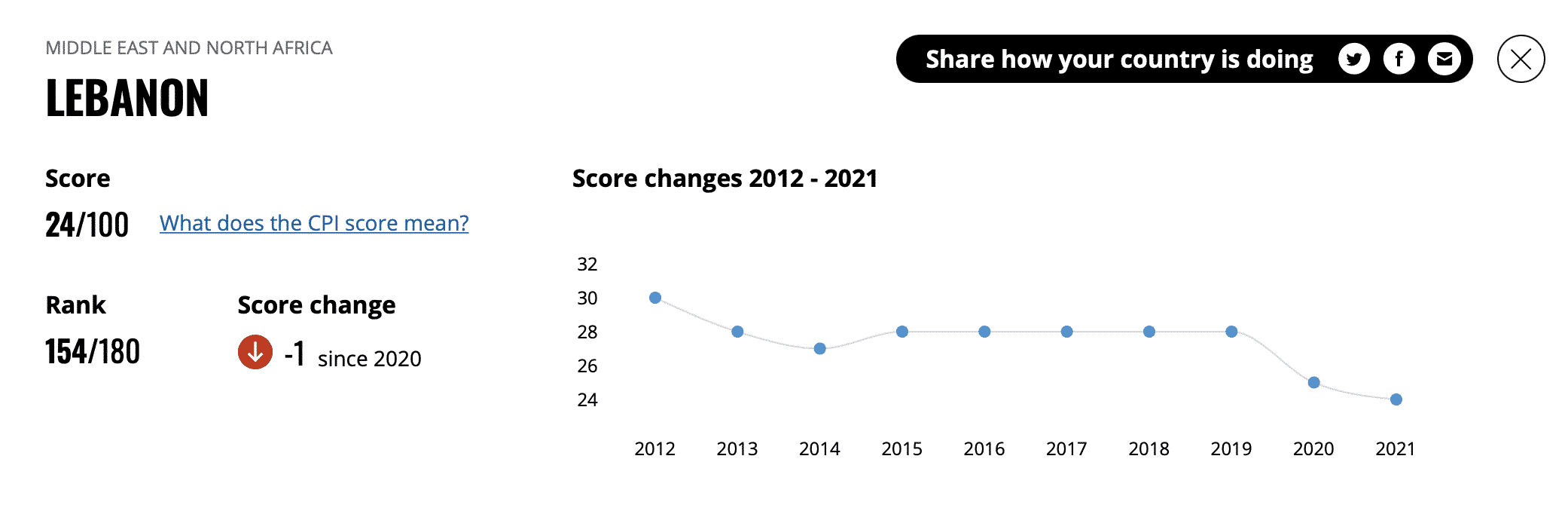 L'ONG Transparency International a publié son dernier rapport concernant le classement de la corruption de 180 pays étudiés. Le Liban perd 2 places, mais...