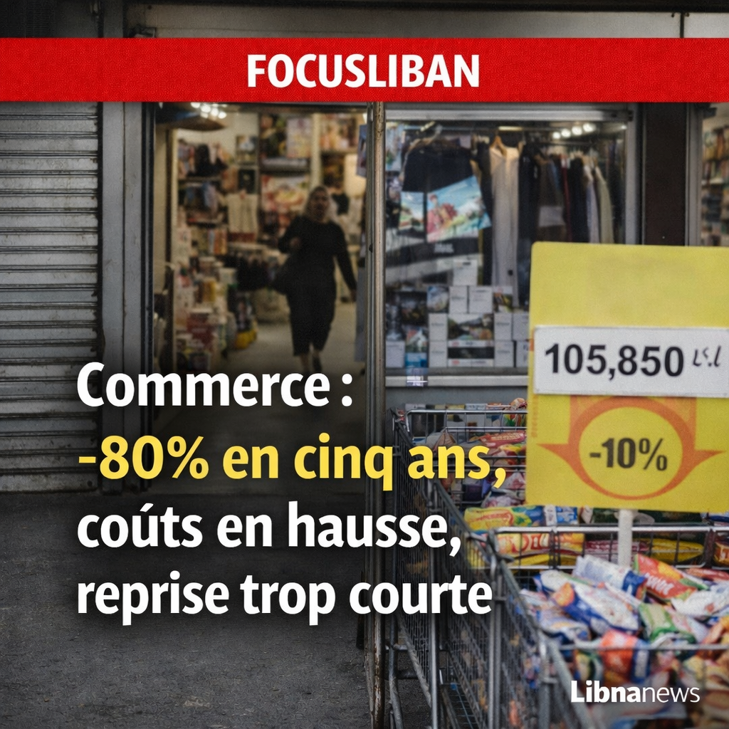 Le commerce au Liban enregistre une baisse estimée à 80% en cinq ans, avec un niveau inférieur à 2018 malgré une courte reprise pendant les fêtes. Les coûts d’énergie, d’électricité et de transport explosent, réduisant les marges. La fragilité du pouvoir d’achat et l’inflation prolongent une tendance structurelle.