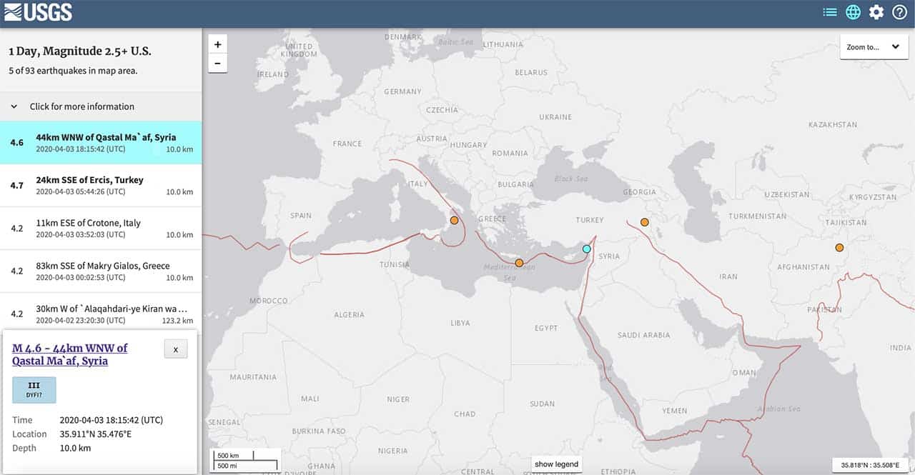 Tremblement de terre ressenti jusqu’au Liban