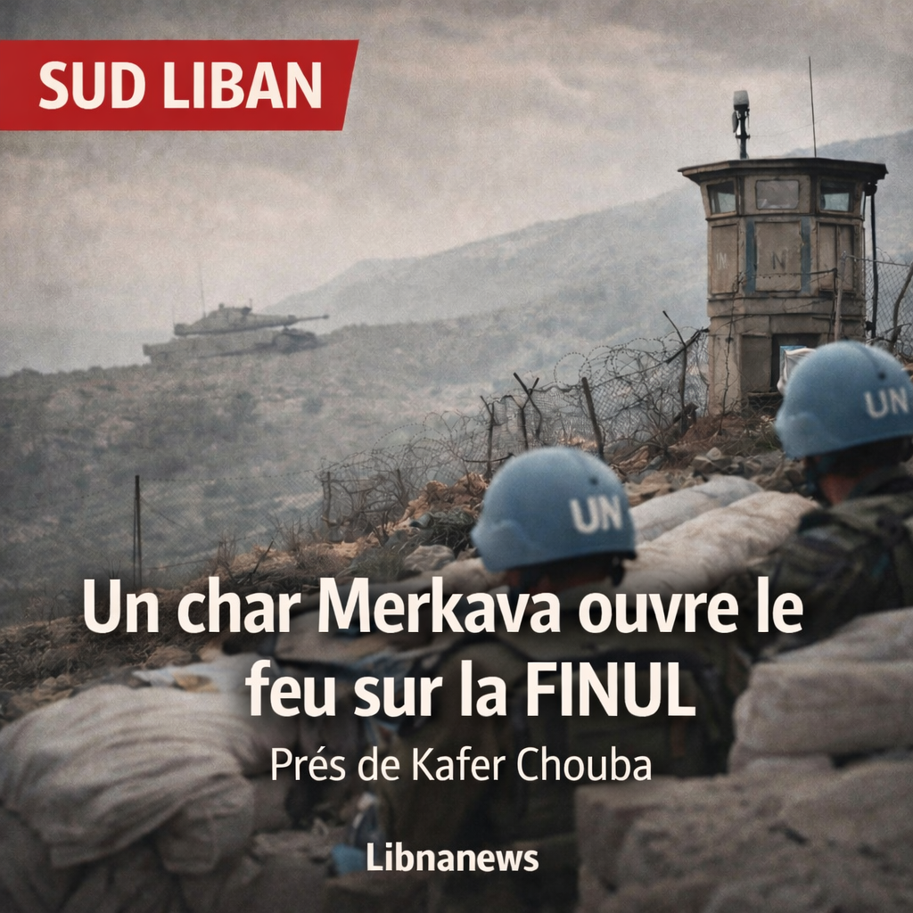 Un char Merkava israélien a tiré une trentaine de balles vers une position de la FINUL près de Kafer Chouba, touchant un poste de sentinelle et un logement, sans blessé. La mission a exigé l’arrêt via ses mécanismes de liaison. L’incident relance l’alerte sur la résolution 1701.